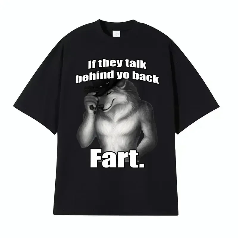 "If They Talk Behind Yo Back, Fart" T-Shirt – Funny Wolf Meme Harajuku Oversized Tee
