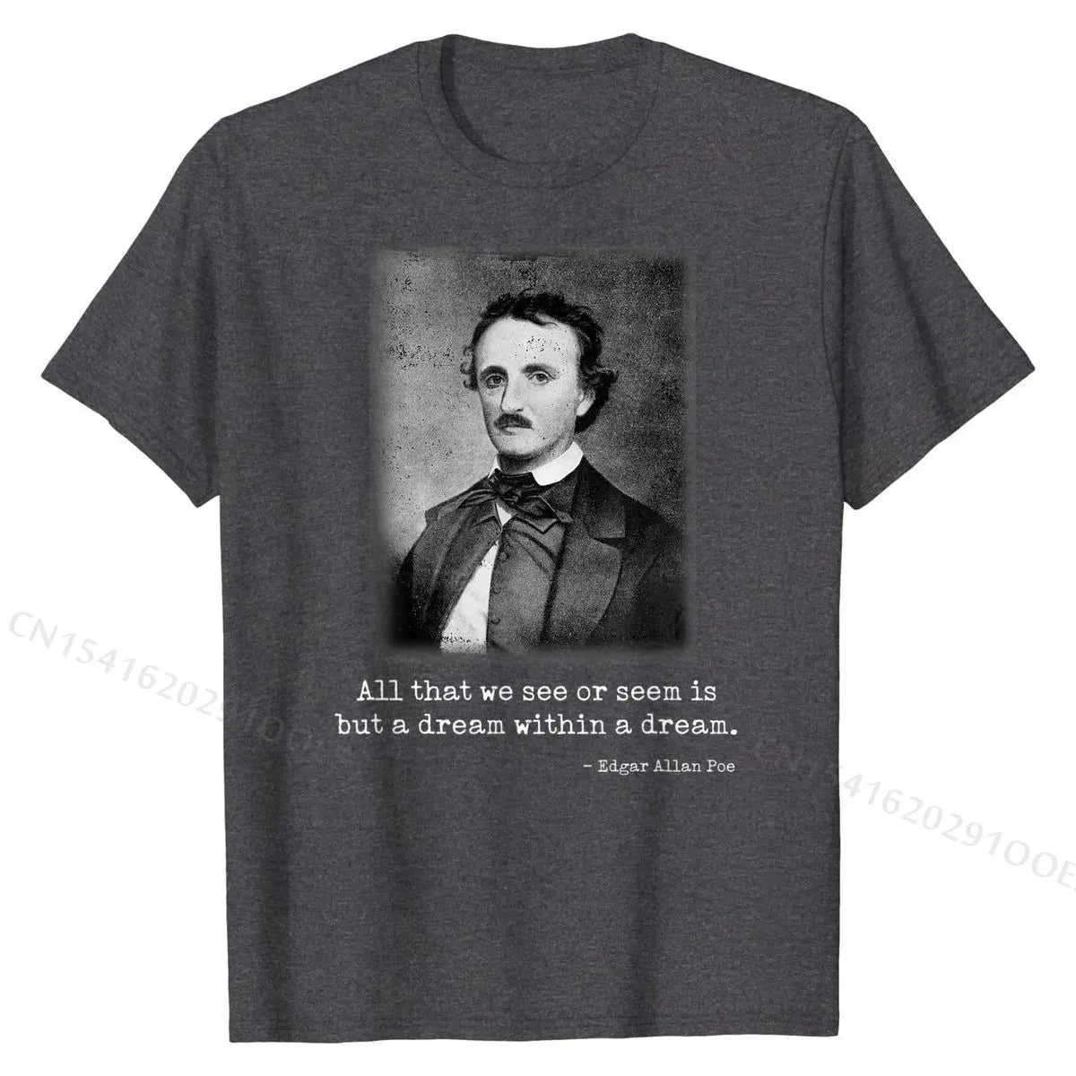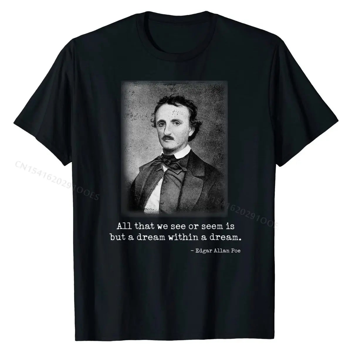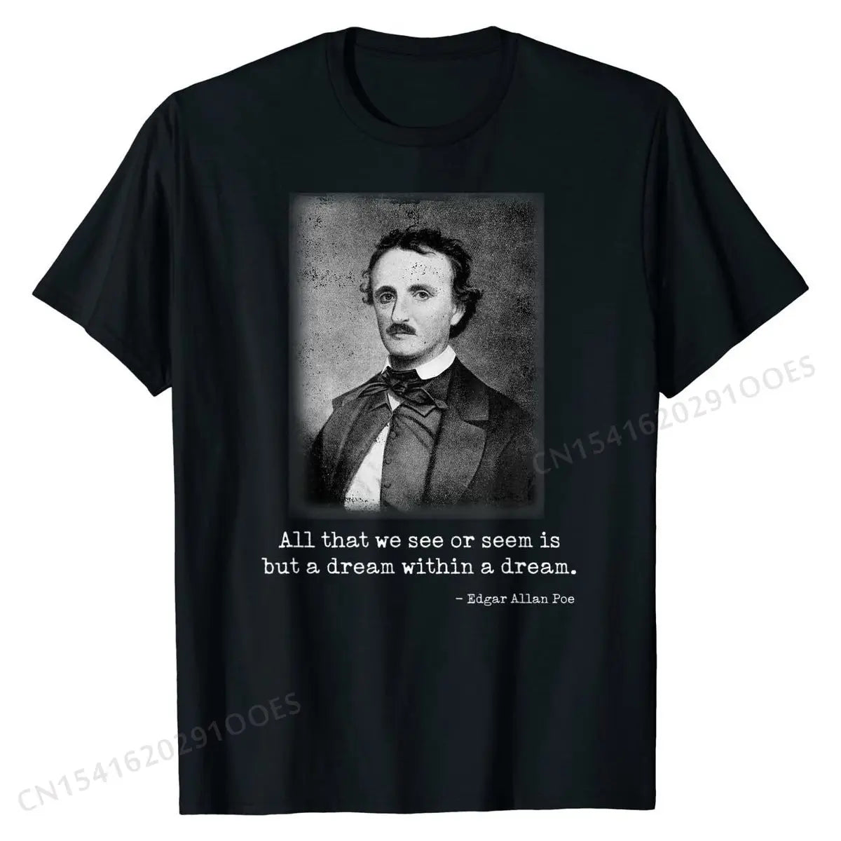 Celebrate the mystery and depth of classic literature with this Edgar Allan Poe quote T-shirt — featuring his haunting line “All that we see or seem is but a dream within a dream” in a stylish, wearable design.