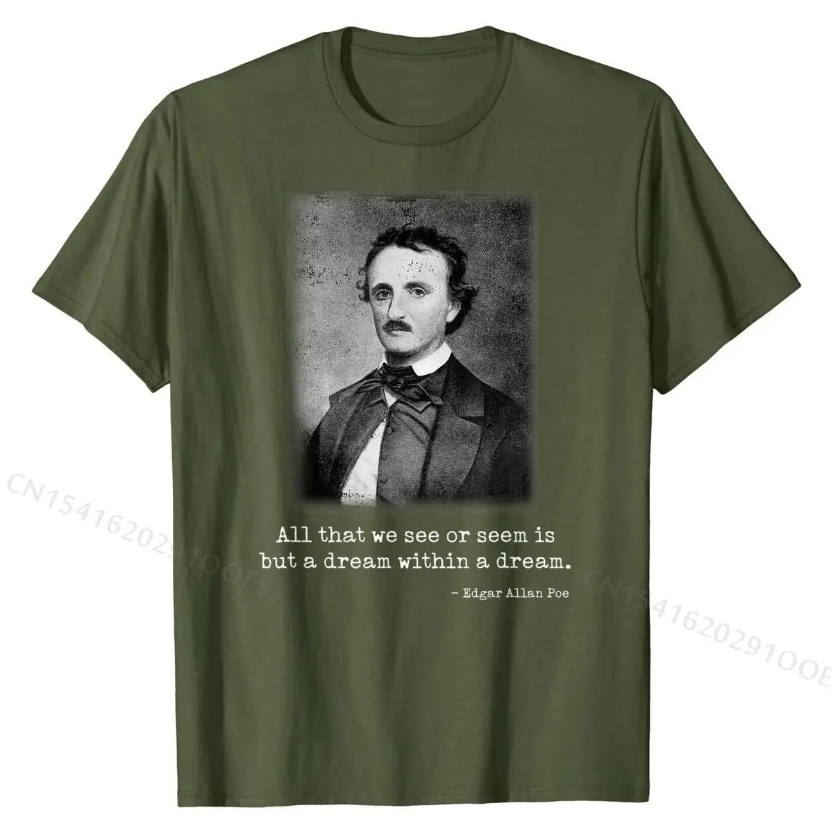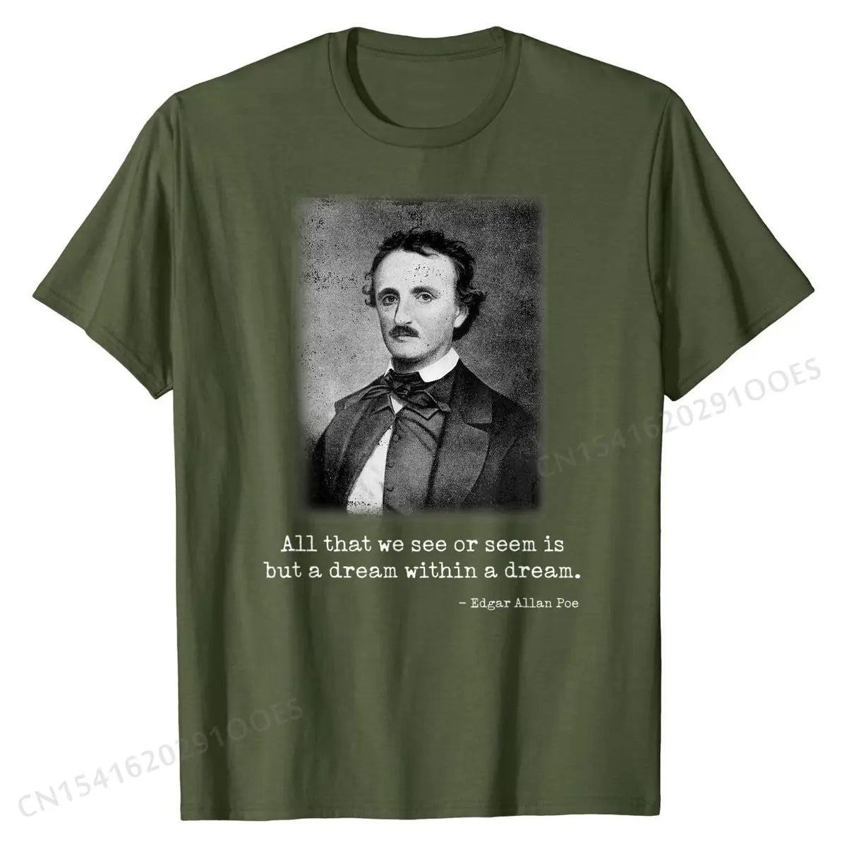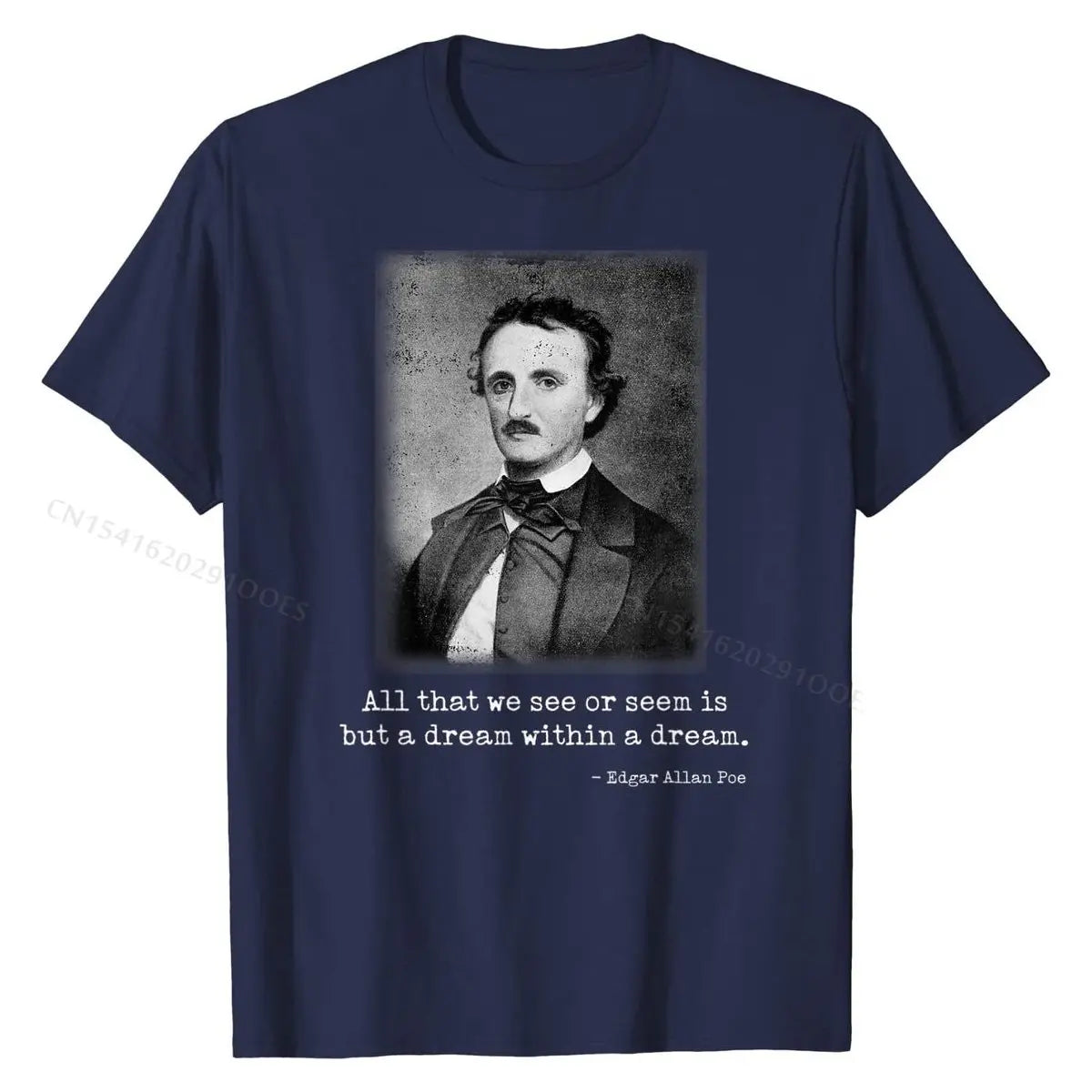Celebrate the mystery and depth of classic literature with this Edgar Allan Poe quote T-shirt — featuring his haunting line “All that we see or seem is but a dream within a dream” in a stylish, wearable design.