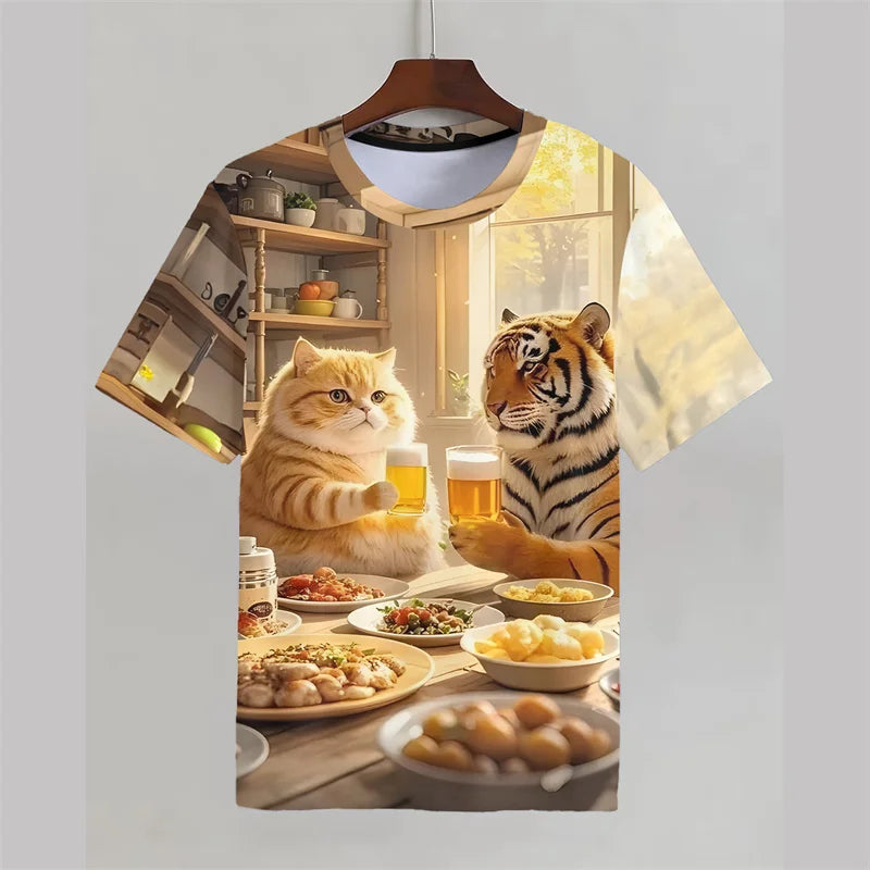 Funny 3D Cat Graphic T-Shirt – Men's & Kids' Summer Streetwear Tee