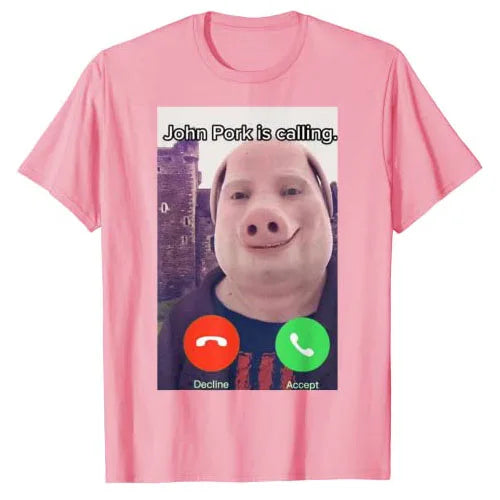 John Pork Is Calling T-Shirt – Funny Pig Meme Graphic Tee for Animal Lovers