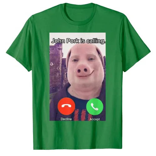 Answer the call of internet humor with this hilarious “John Pork Is Calling” T-shirt — a must-have graphic tee for meme fans and anyone who loves quirky, viral-style fashion.