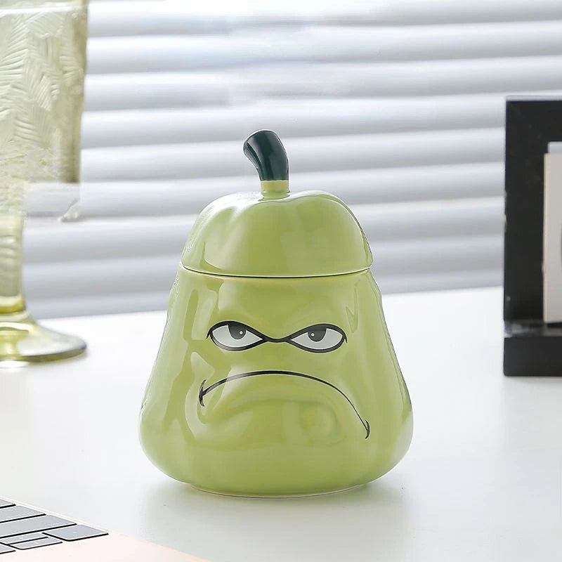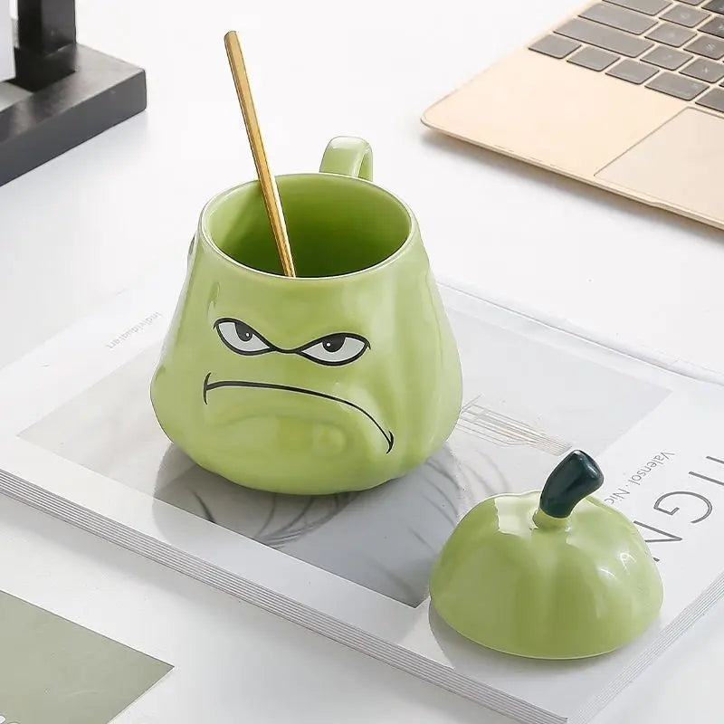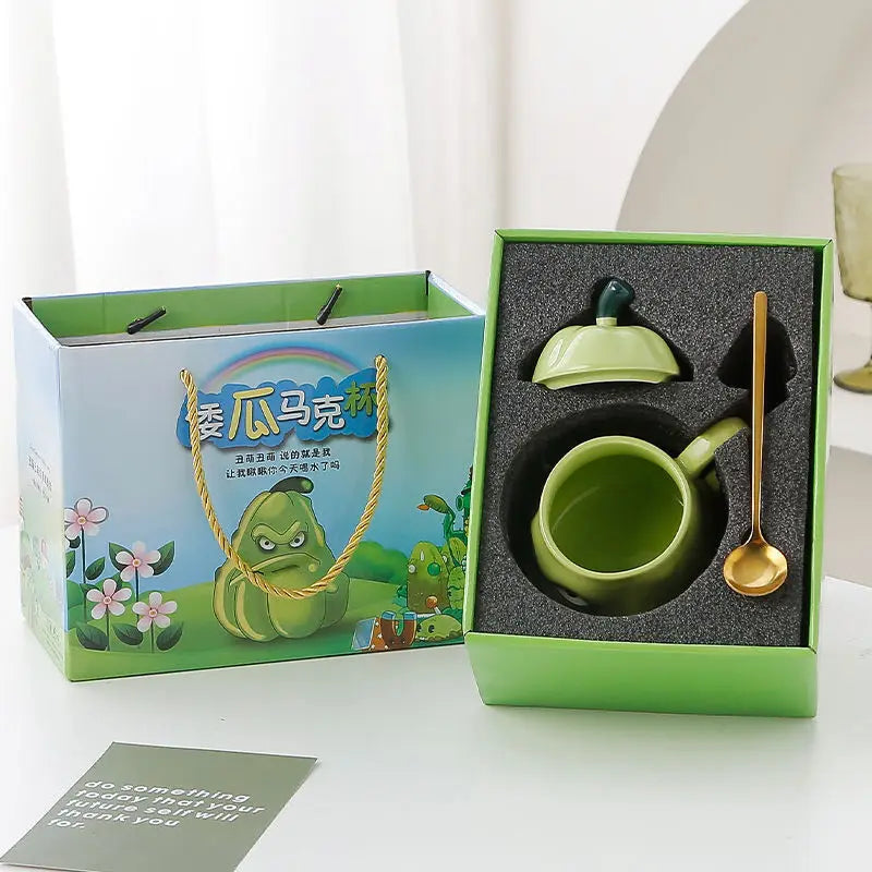 Creative Wogua Ceramic Mug Series – Wavy & Bitter Gourd Cups with Lid and Spoon