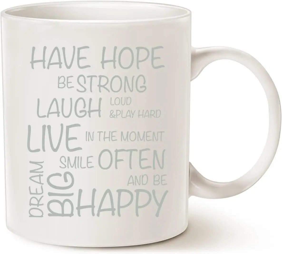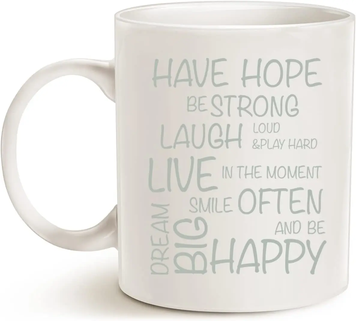 Funny Inspirational Coffee Mug – “Have Hope Be Strong” Motivational Quote Ceramic Cup (11 Oz)