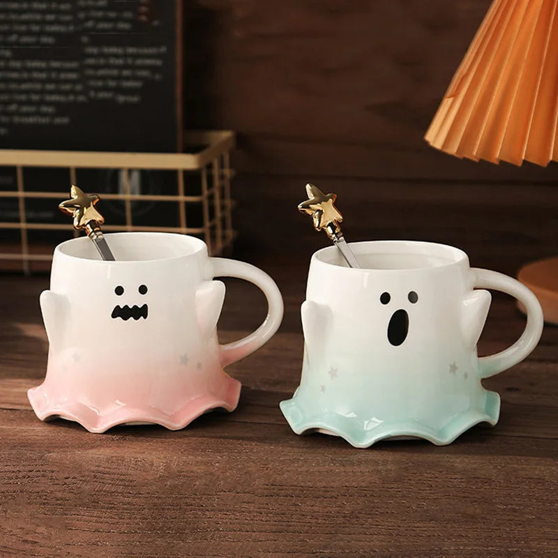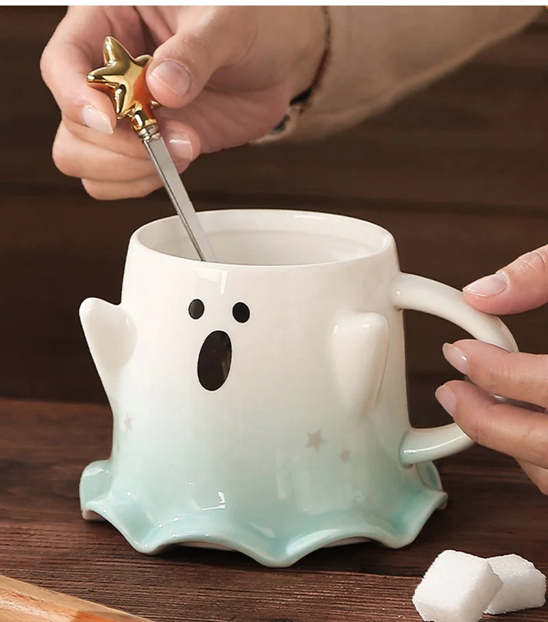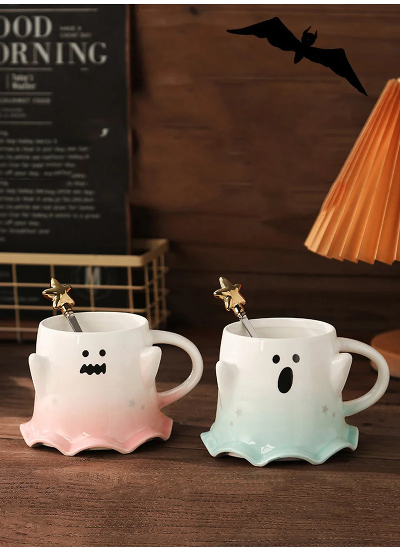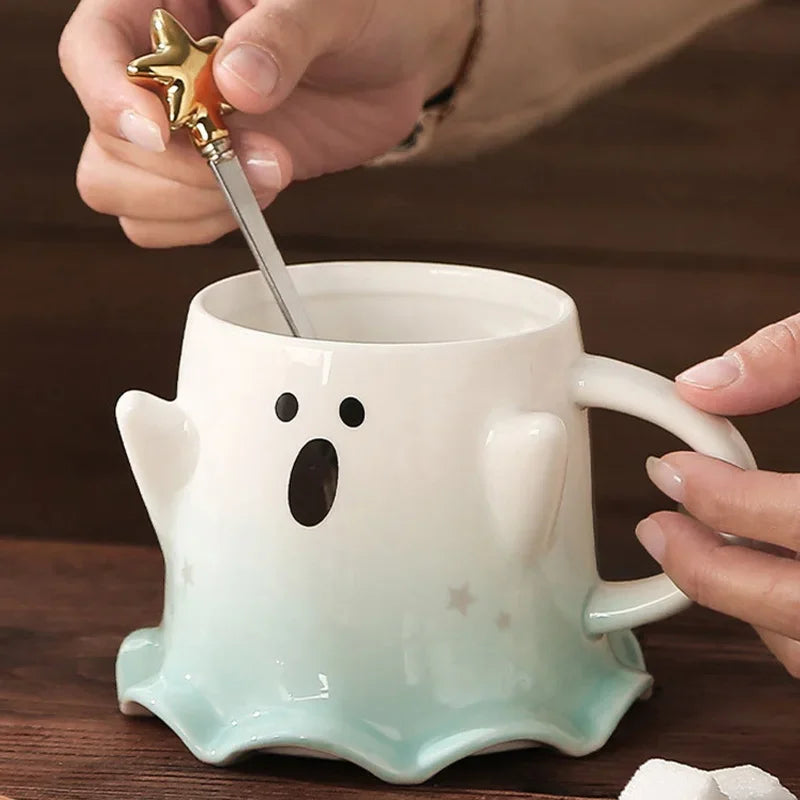 Halloween Ceramic Mugs – Creative Ghost Coffee & Milk Mug with Spoon