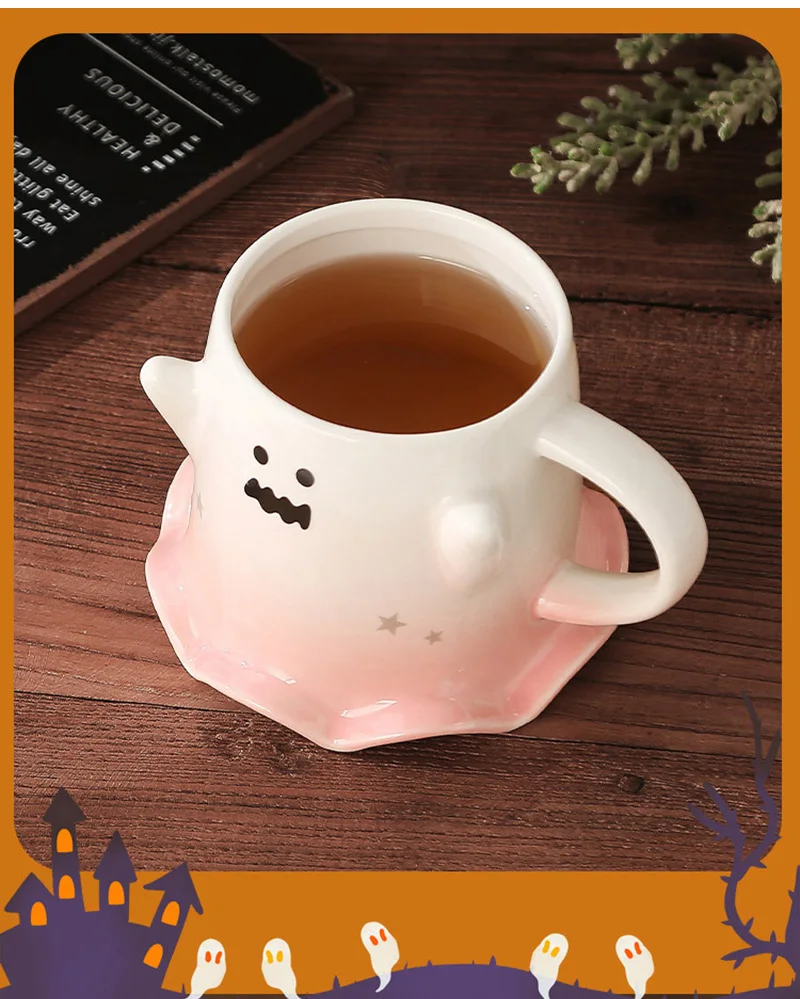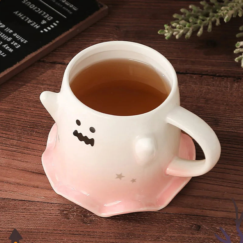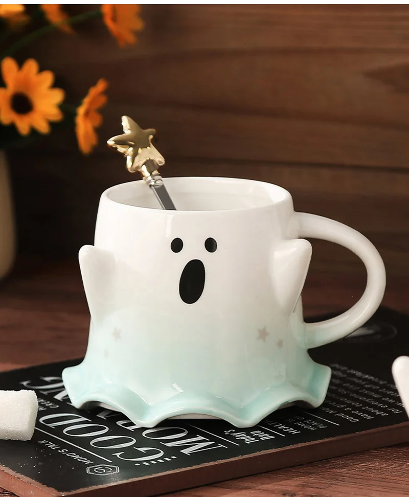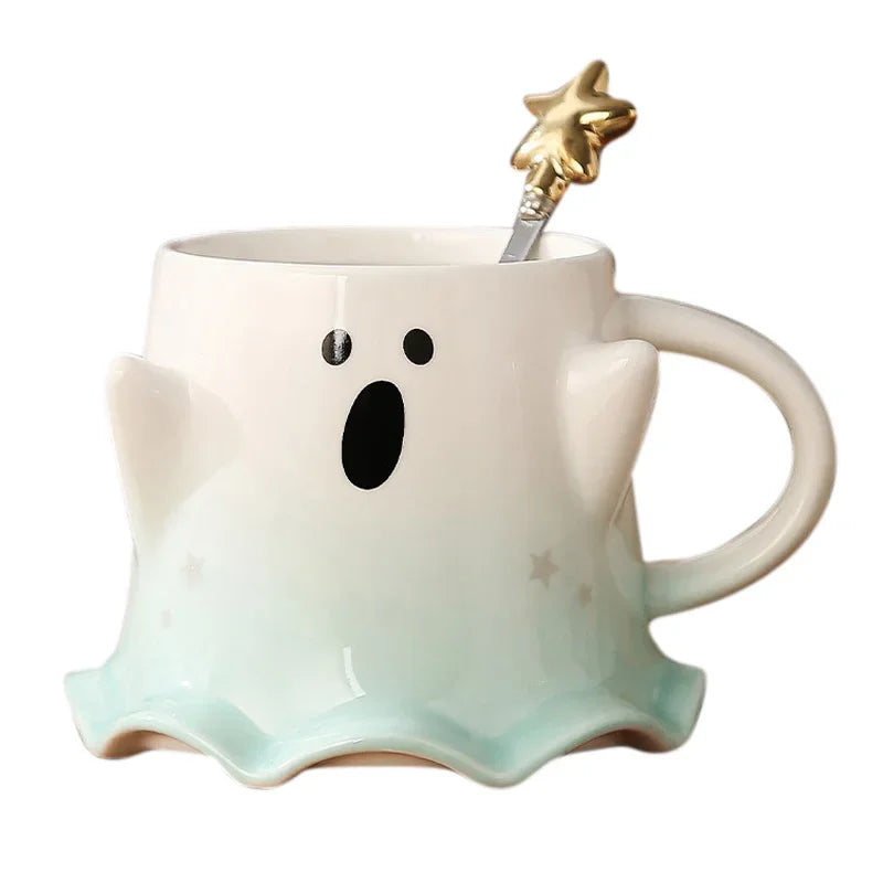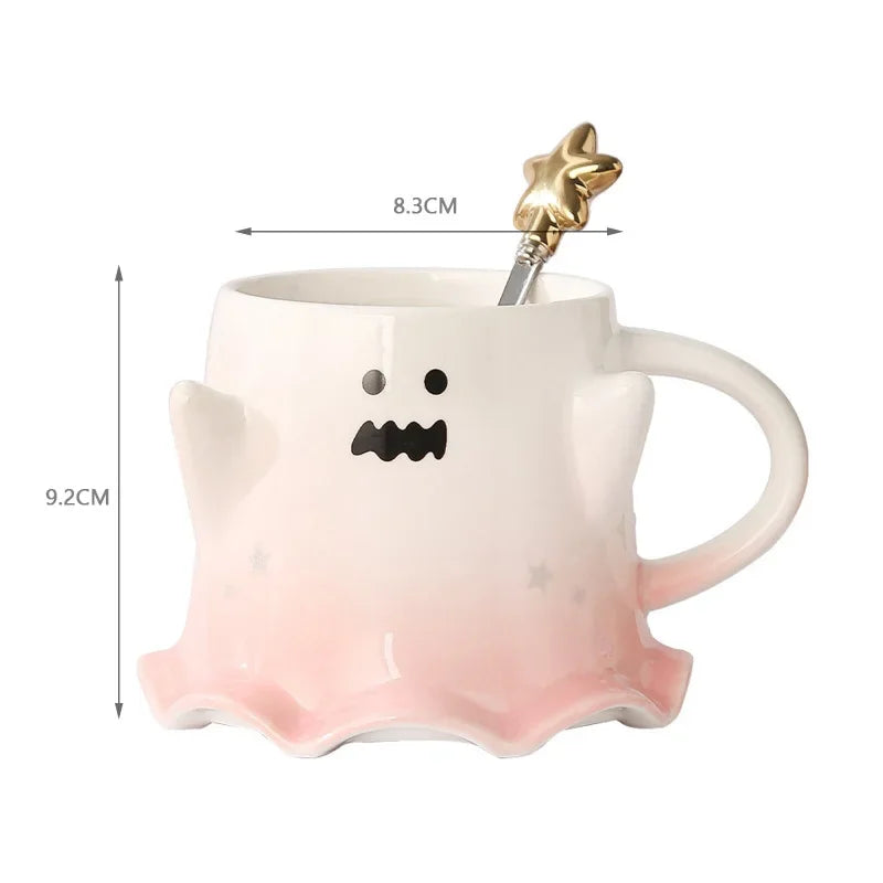 Halloween Ceramic Mugs – Creative Ghost Coffee & Milk Mug with Spoon