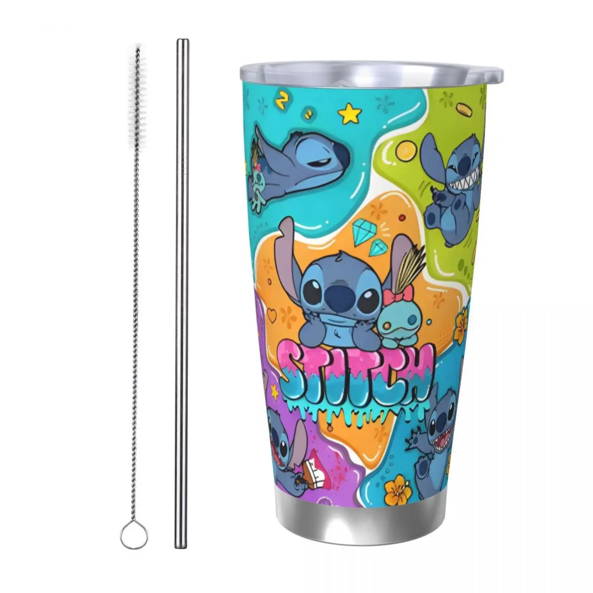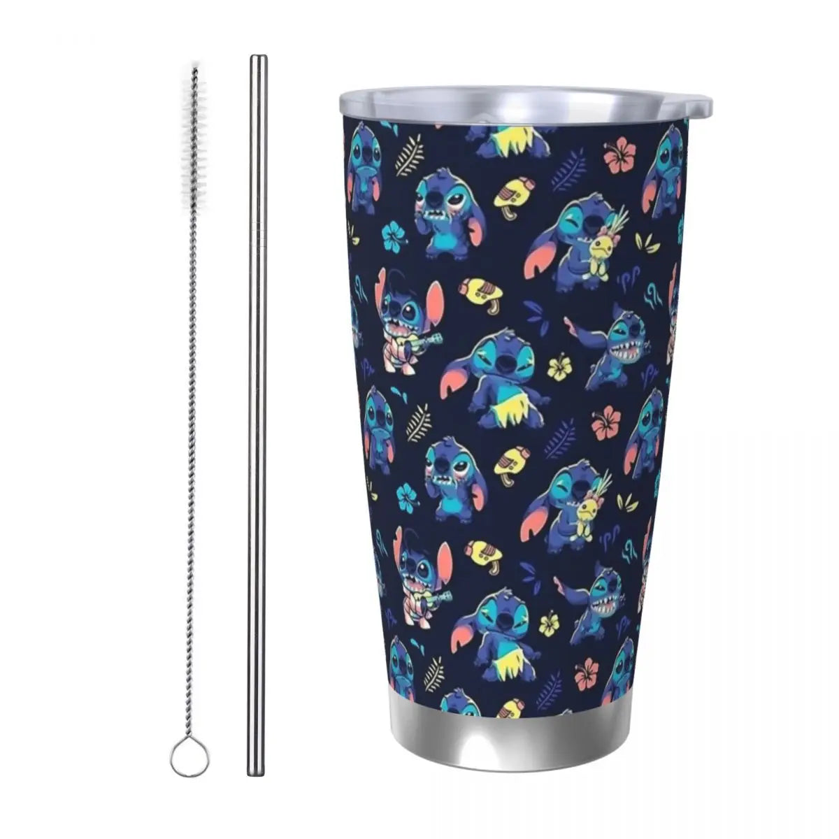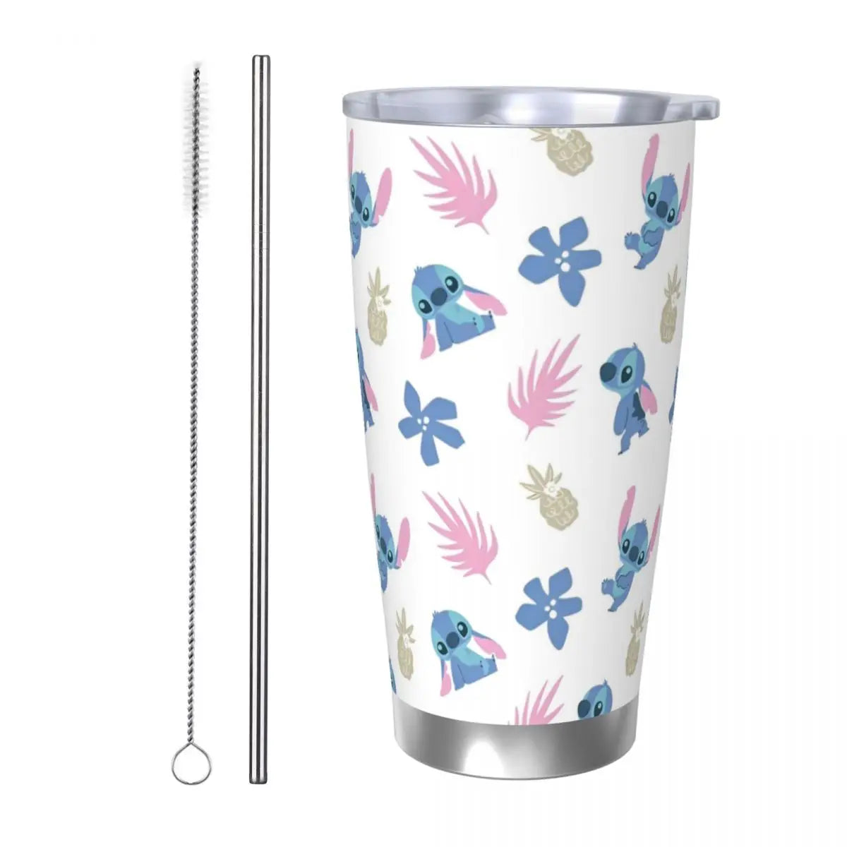 Stitch’s Insulated Tumbler – Hawaiian Stainless Steel Mug with Straw & Lid (20oz)
