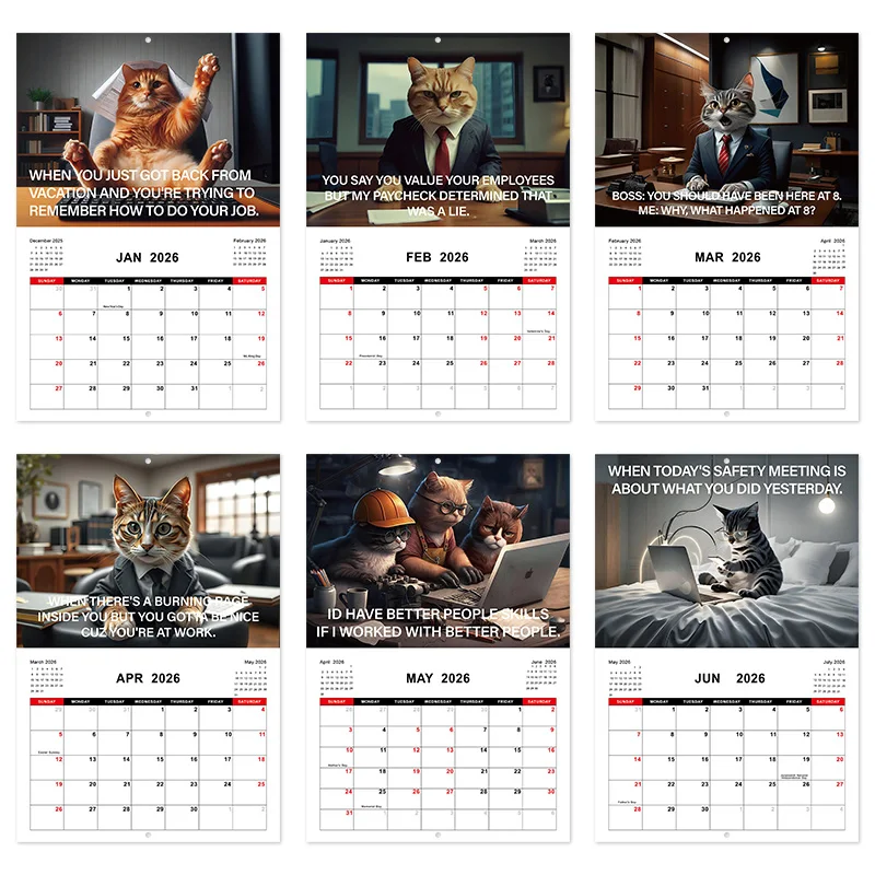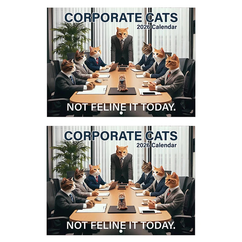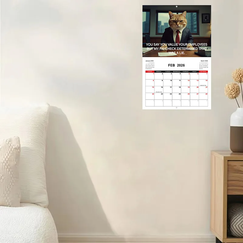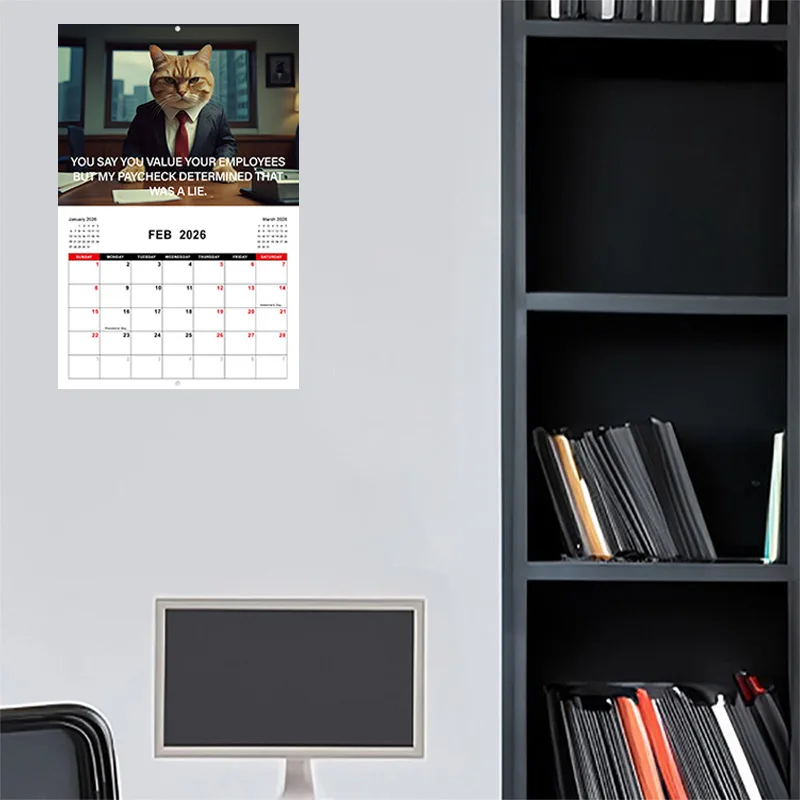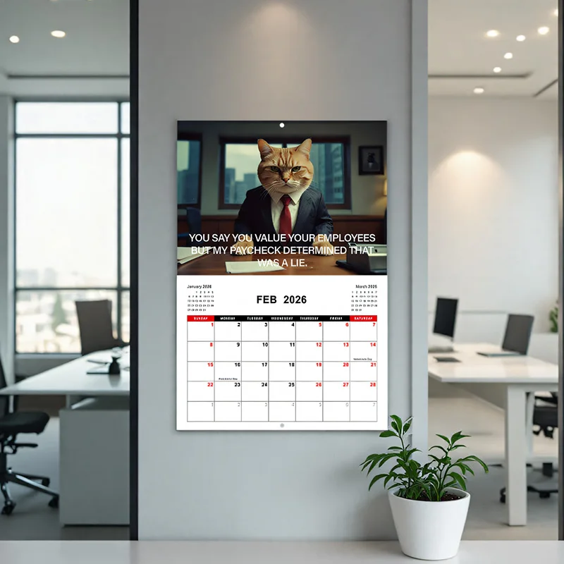 Stay organized and entertained all year long with the 2026 Funny Corporate Cat Wall Calendar — featuring hilarious cat memes in workplace settings, perfect for office walls, home study spaces, or teacher desks.