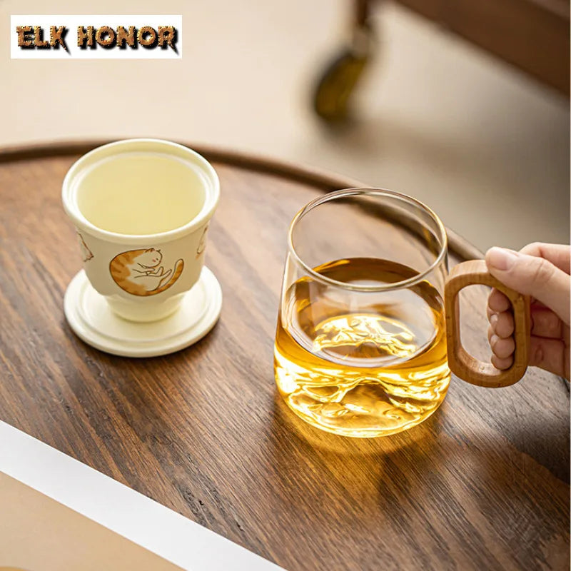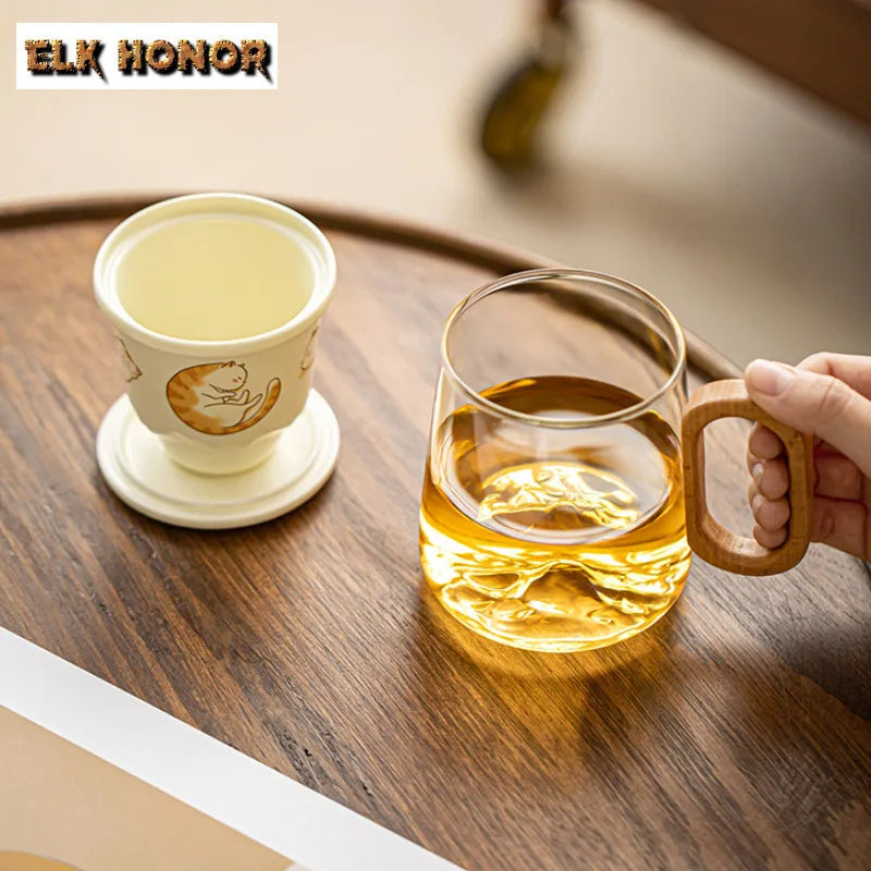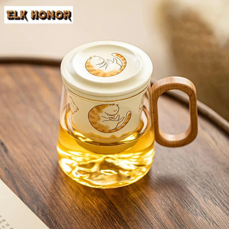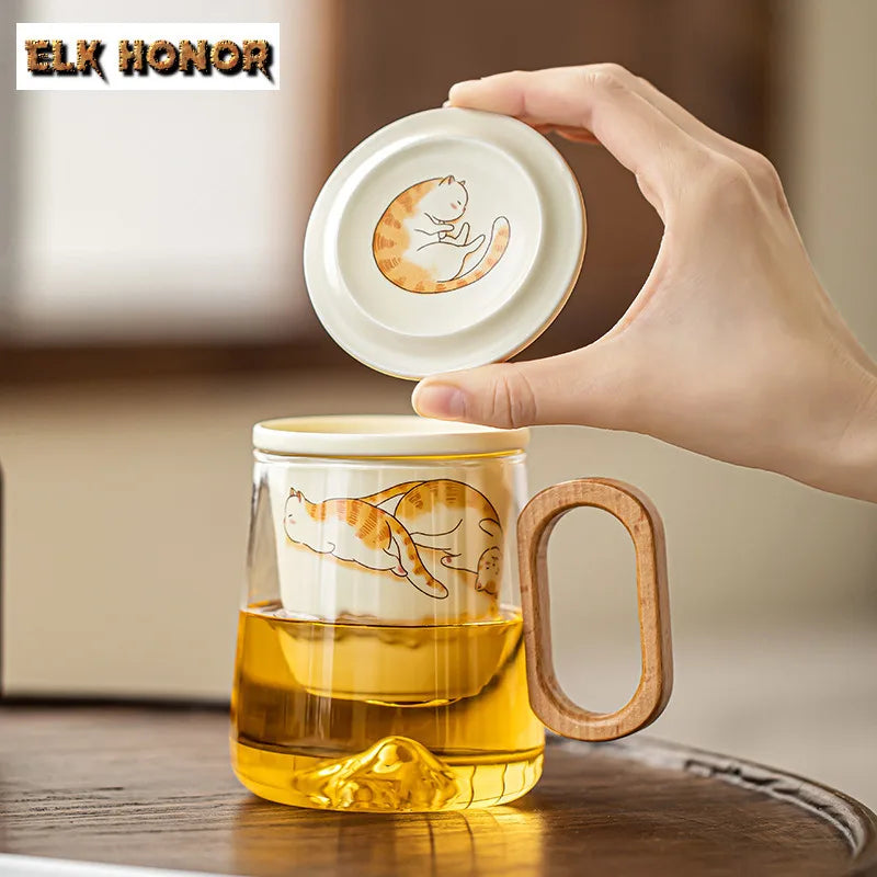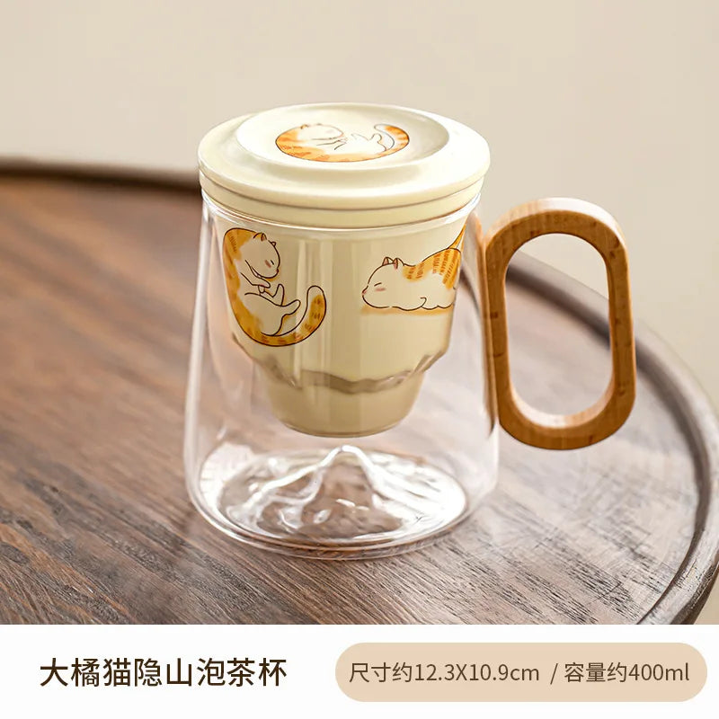 400ml Big Orange Cat Borosilicate Glass Tea Cup – Antique Mug with Infuser & Filter