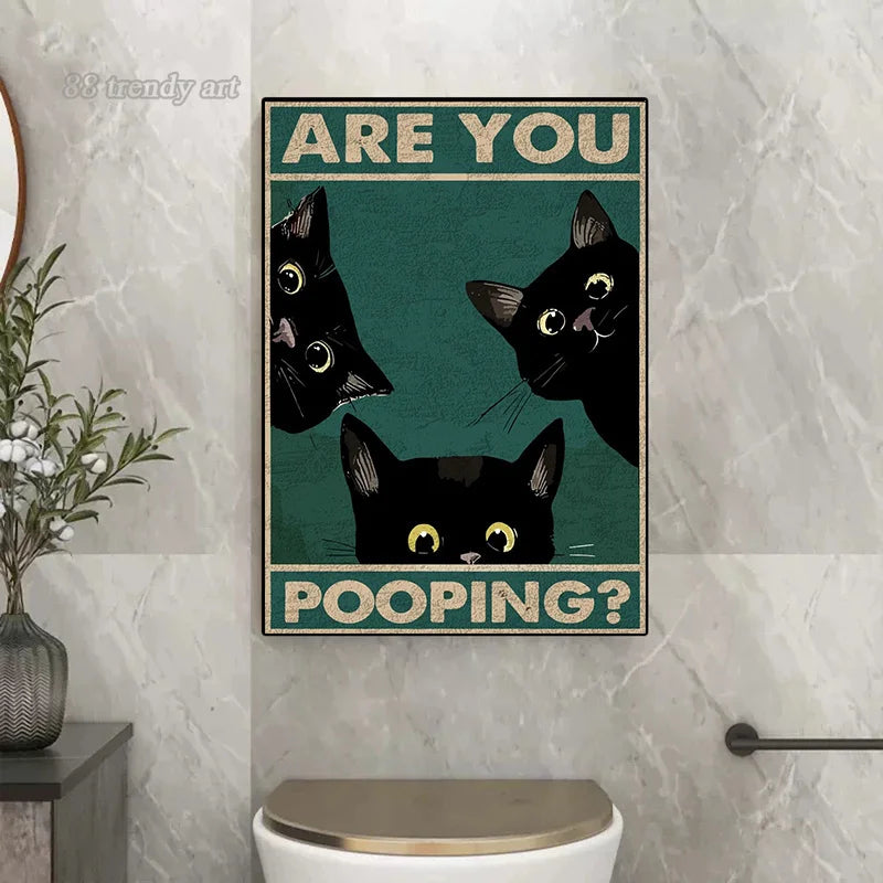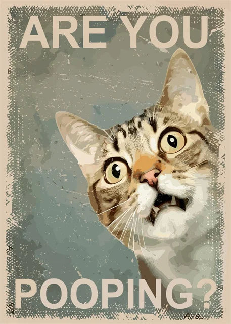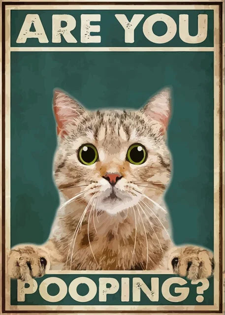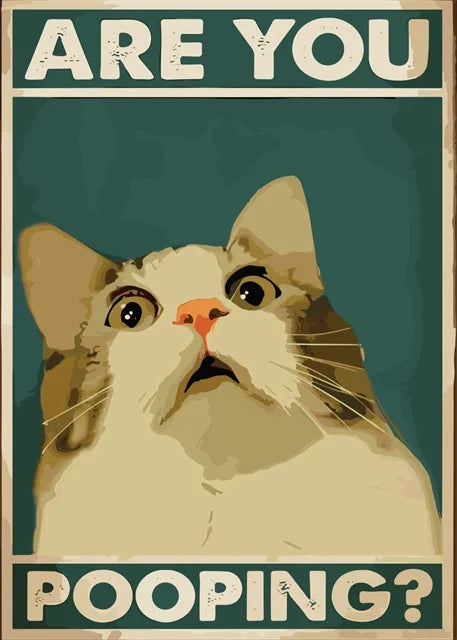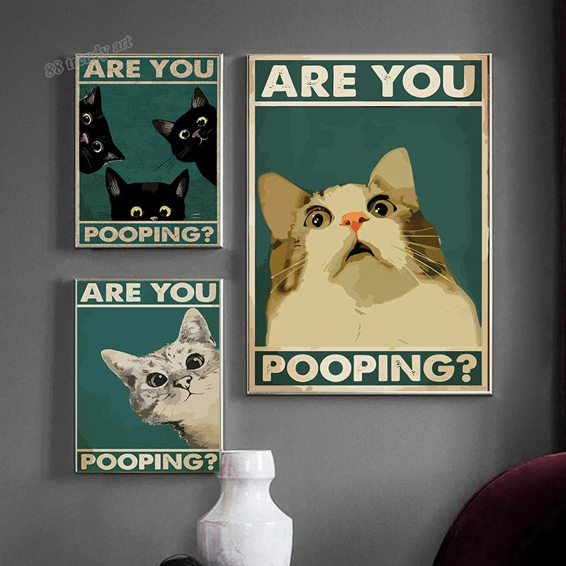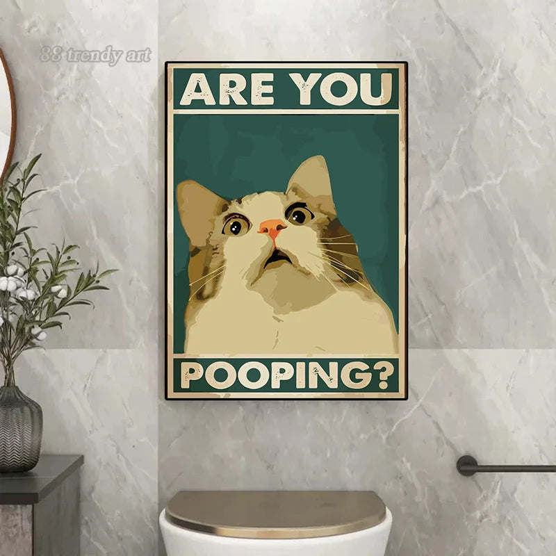 "Are You Pooping?" Cat Poster – Vintage Funny Bathroom Wall Art
