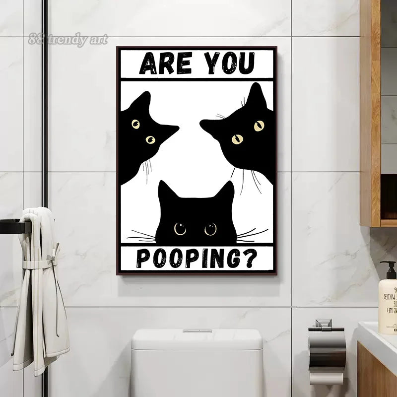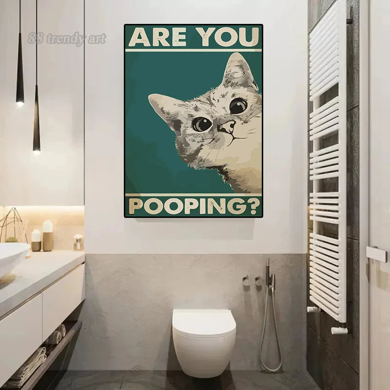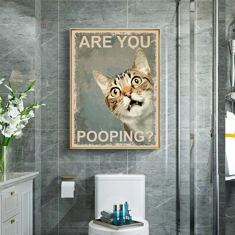 Turn your bathroom into a laugh zone with this adorable and cheeky Are You Pooping? cat canvas! With vintage-style charm and curious kitty humor, it's the purr-fect touch for your toilet décor.