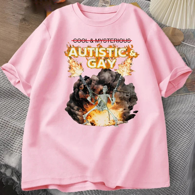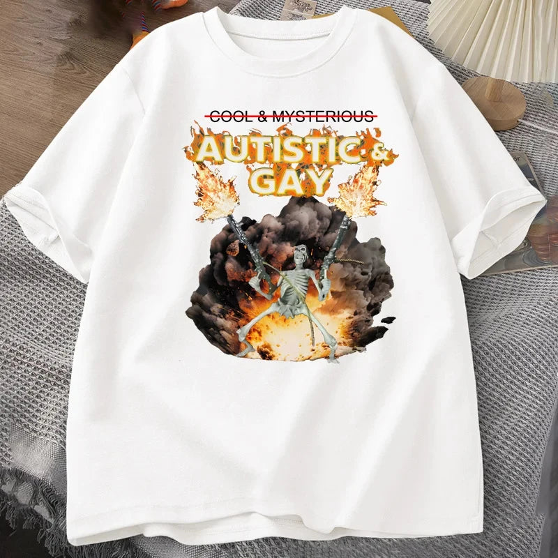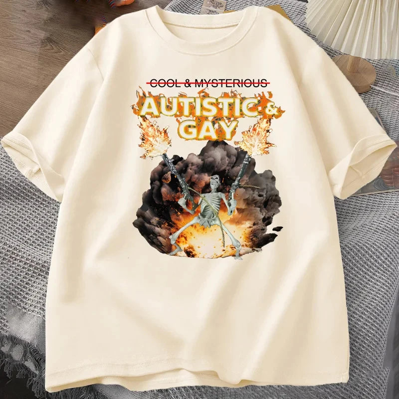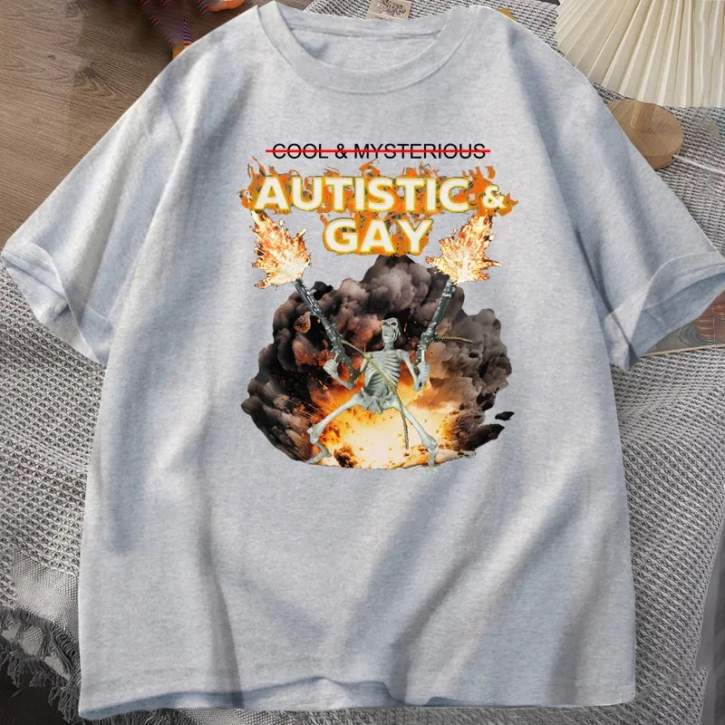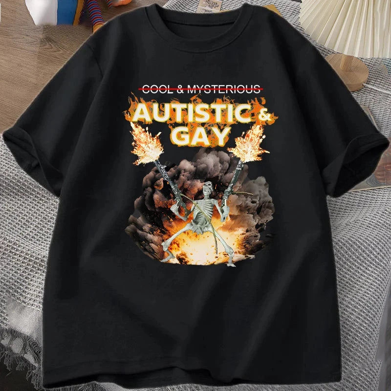 Make a bold, unapologetic statement with the Autistic and Gay Skeleton Explosion meme T-shirt — chaotic, hilarious, and proudly expressive. A perfect blend of humor, identity, and internet culture.