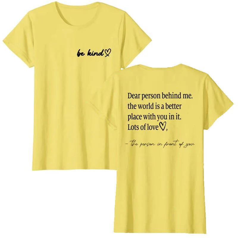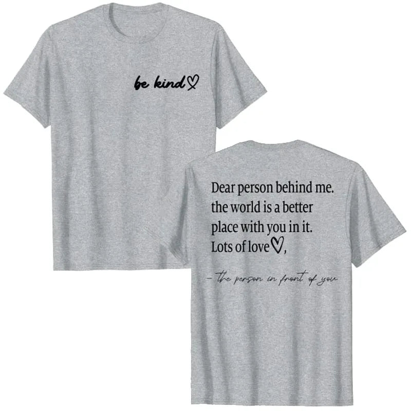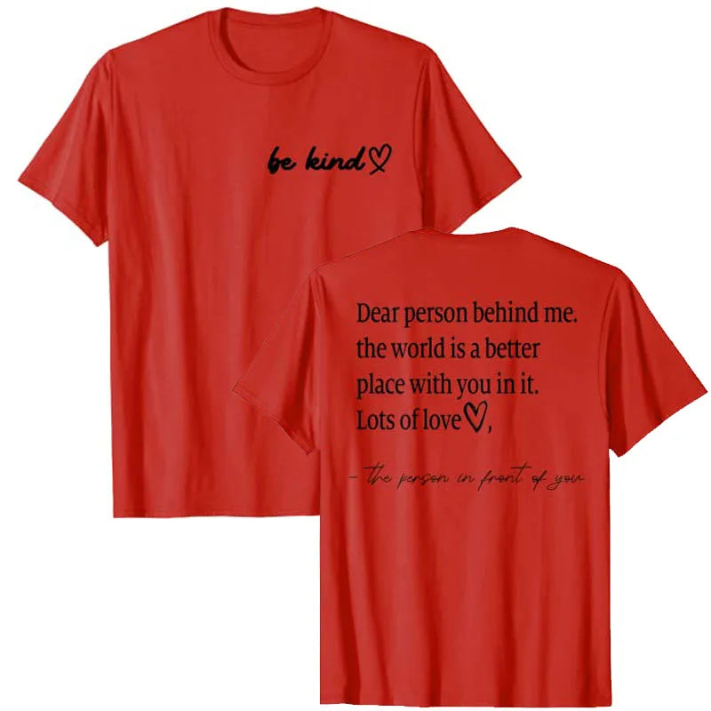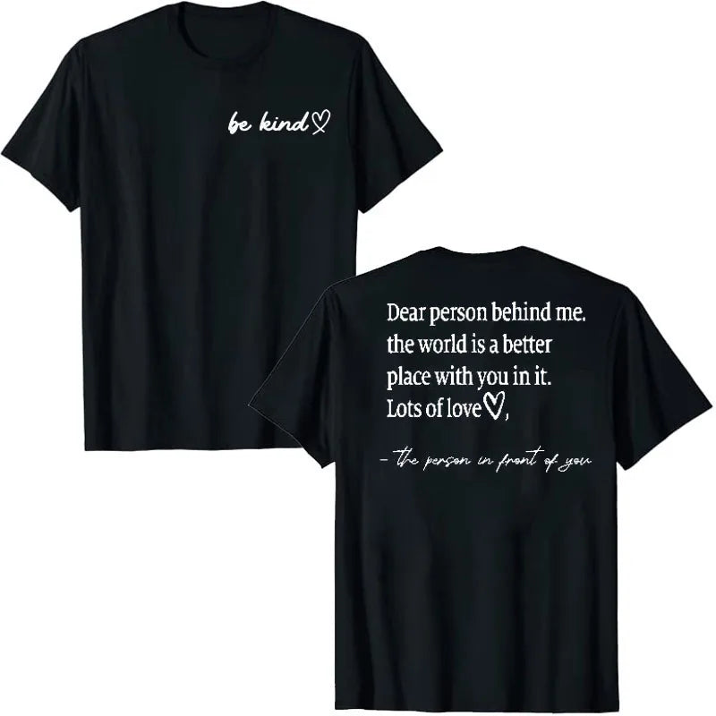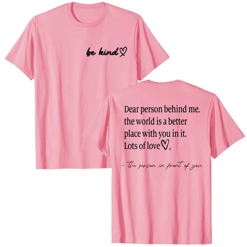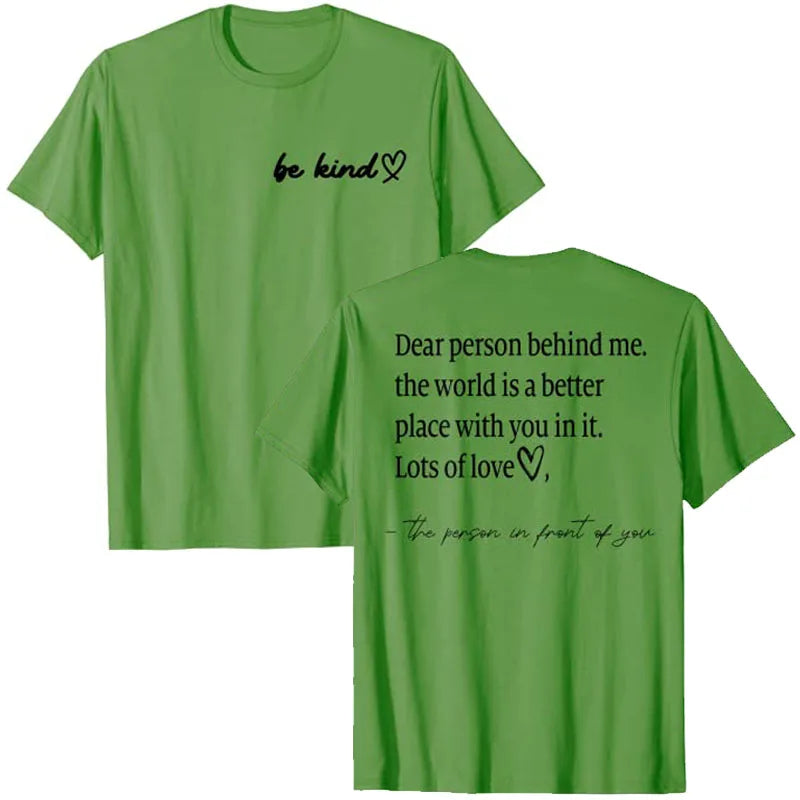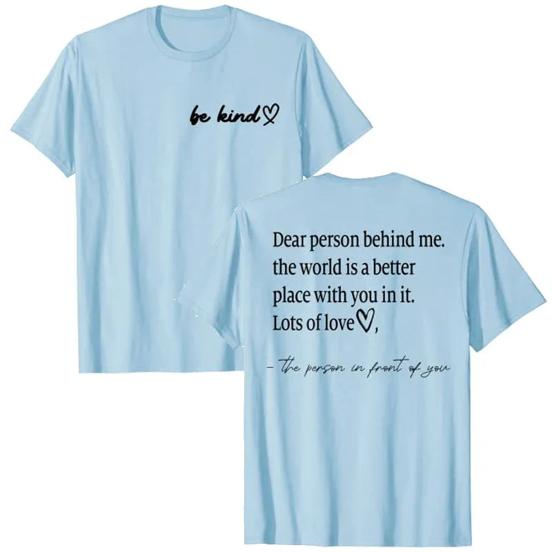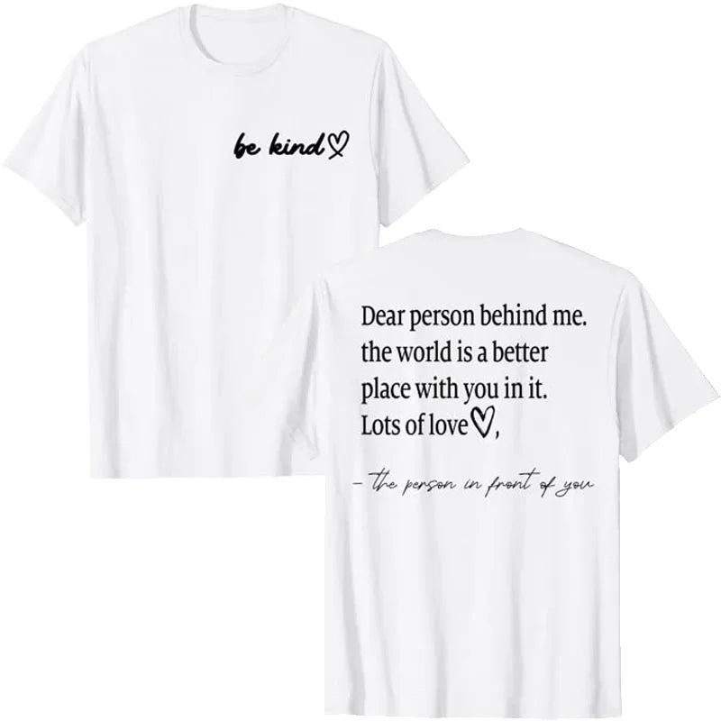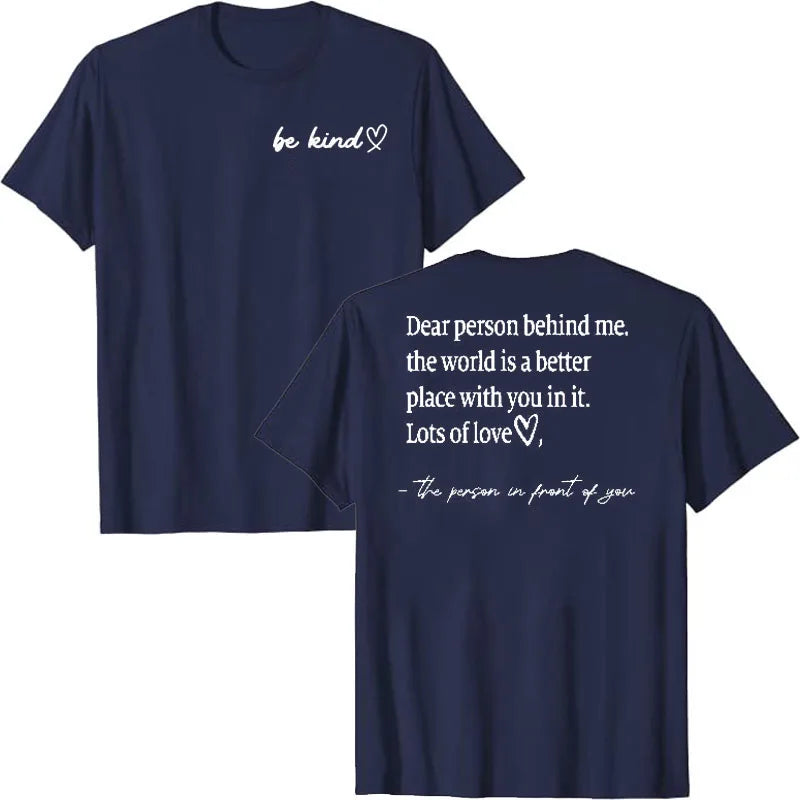 "Be Kind Dear Person Behind Me" Quote Graphic T-Shirt – Uplifting & Funny Sayings Tee