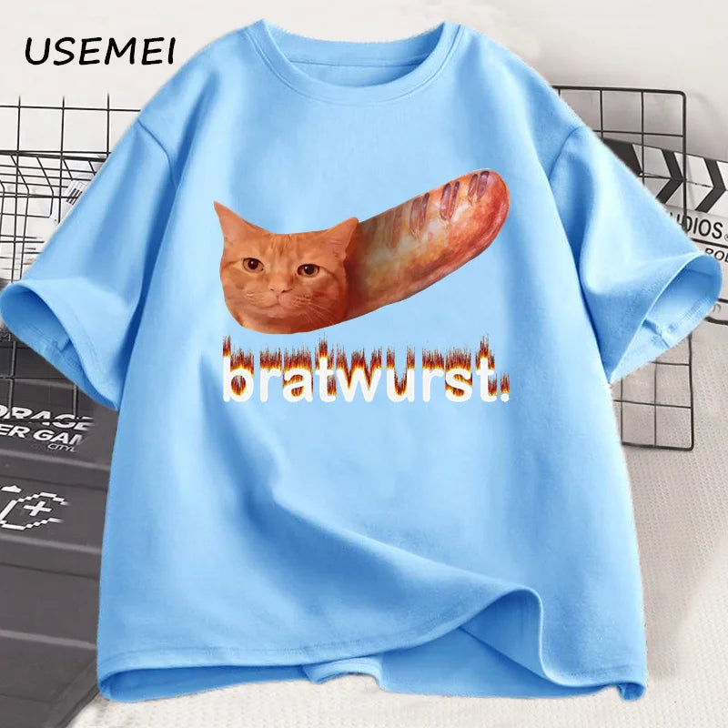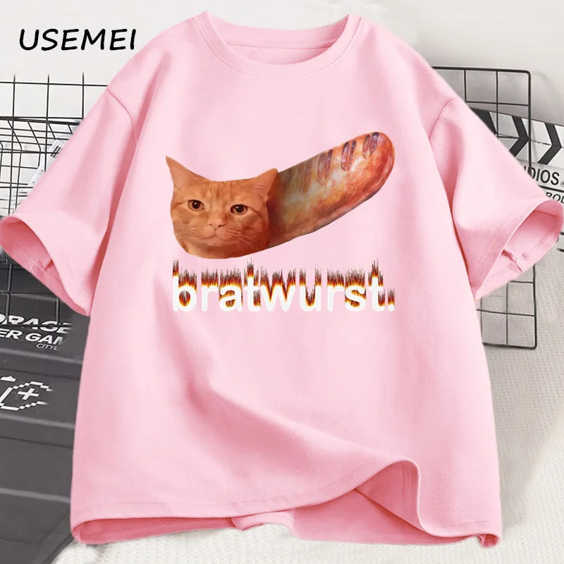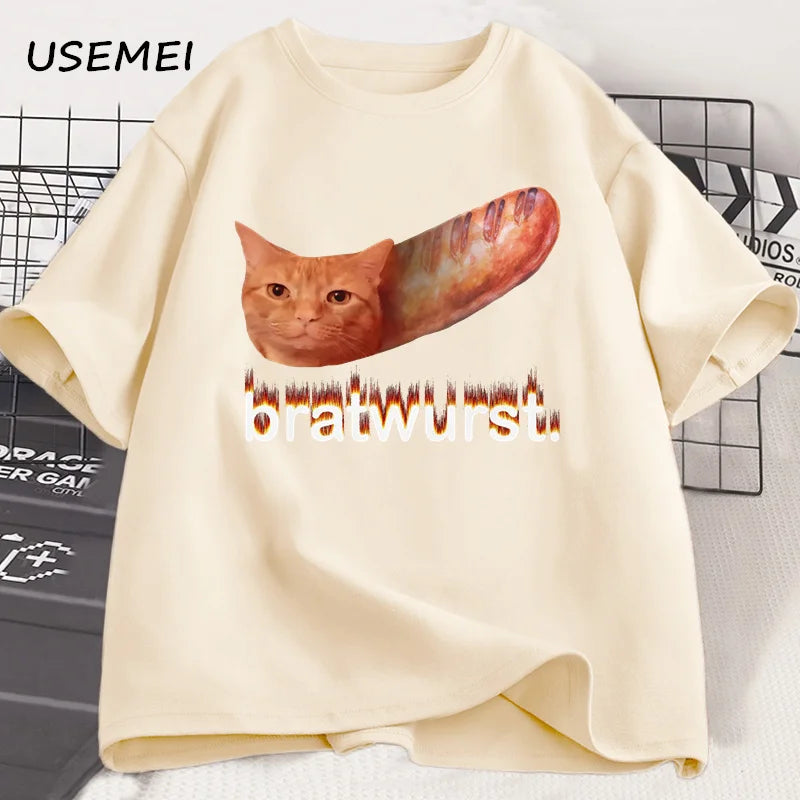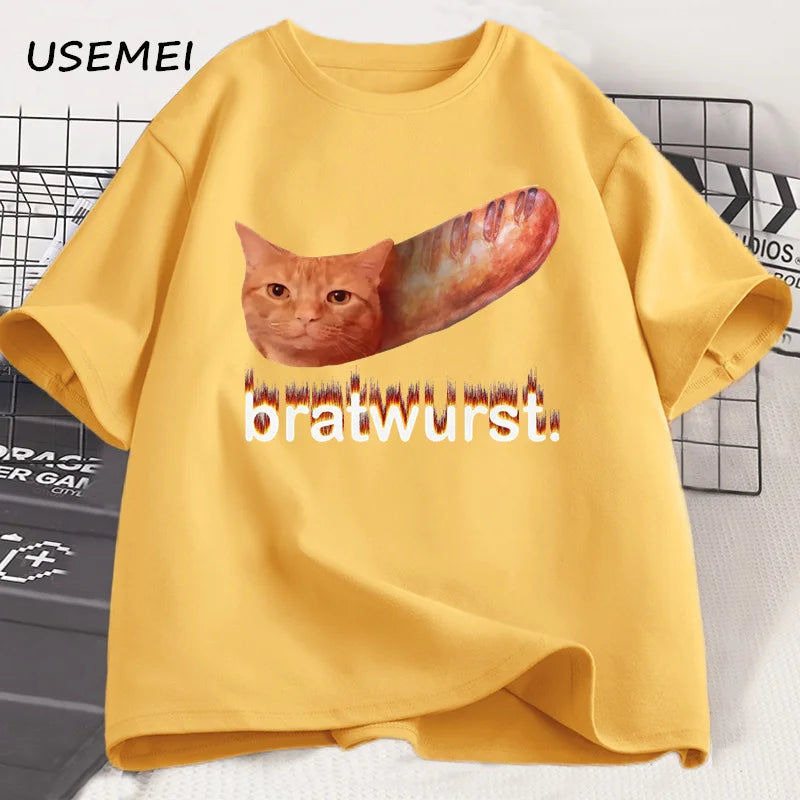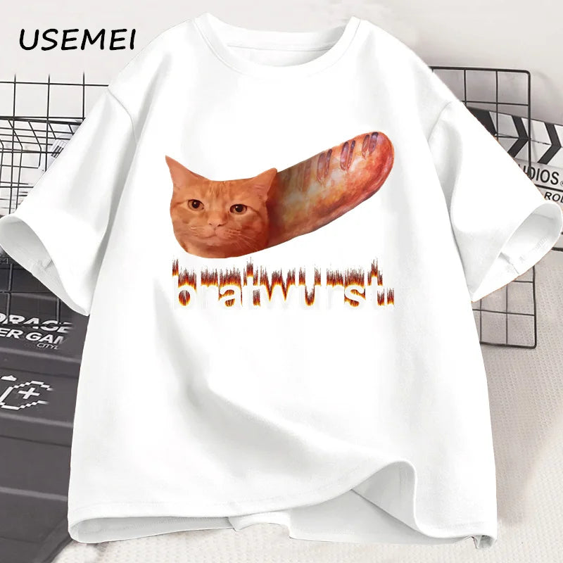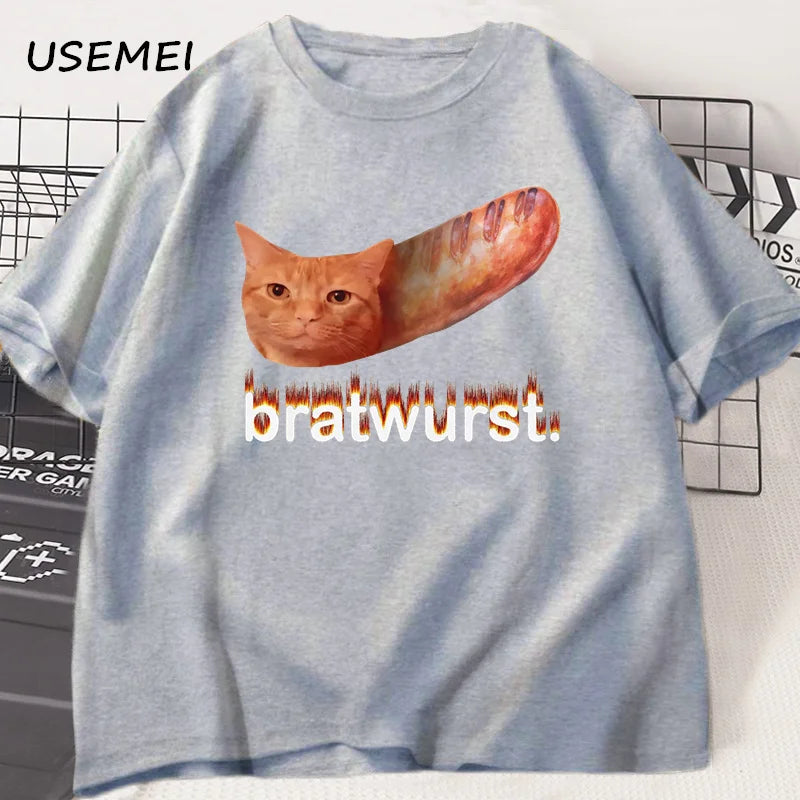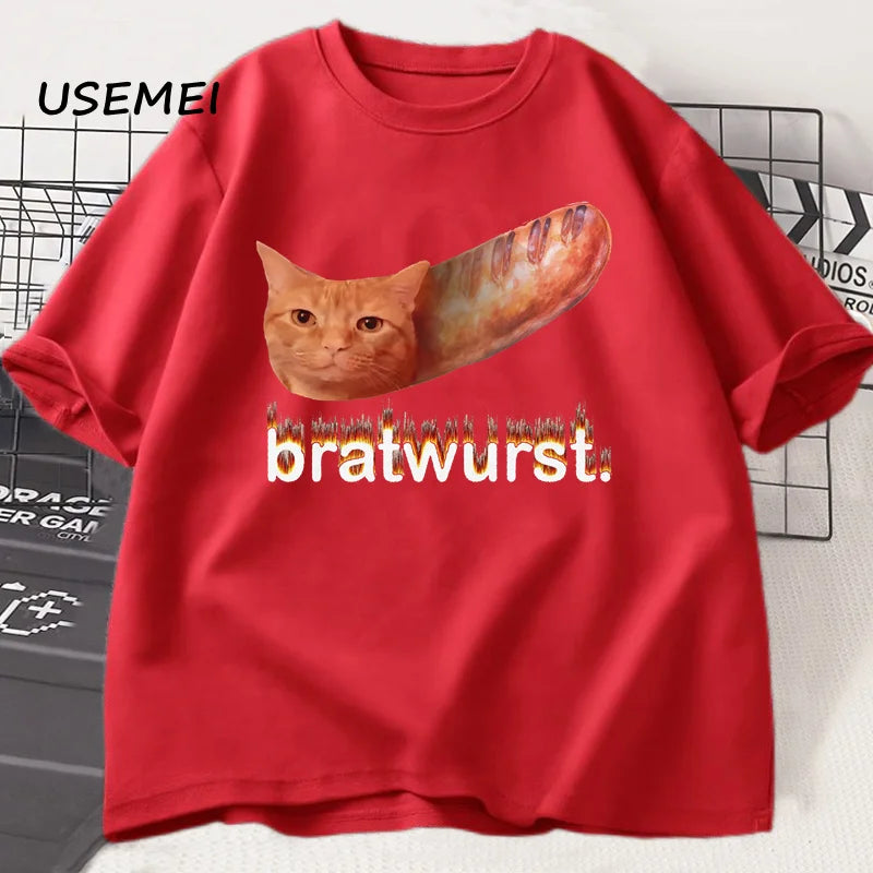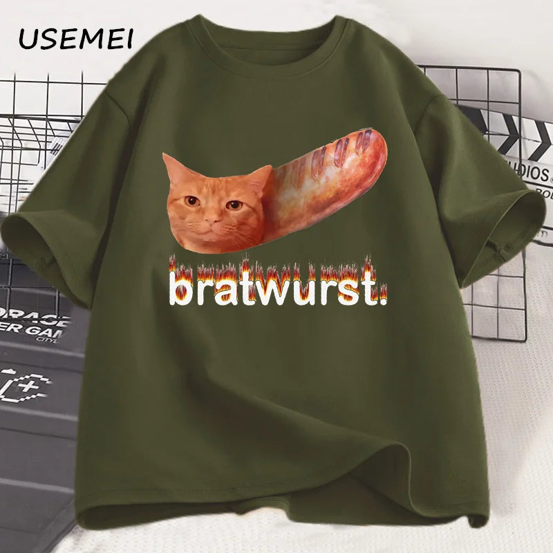Add a fun twist to your wardrobe — grab your Bratwurst Funny Cat Meme T-Shirt today!