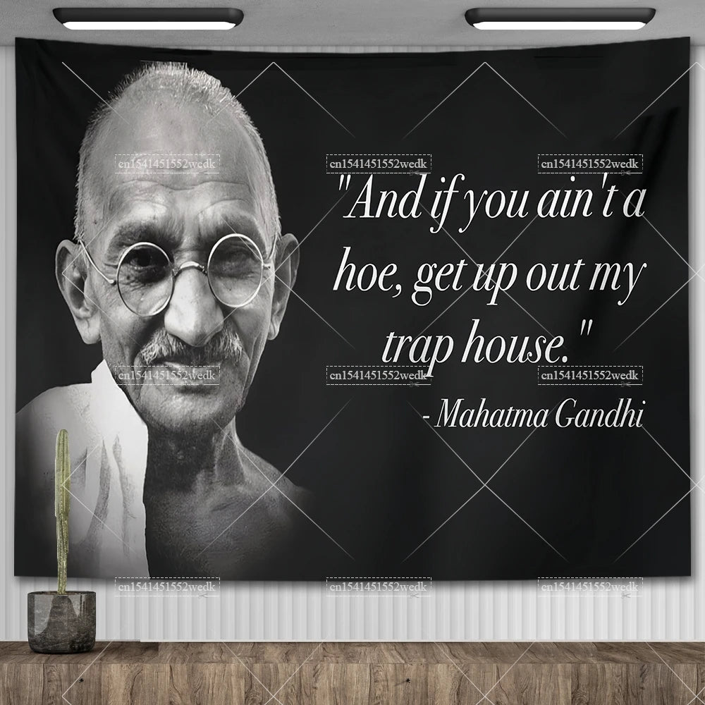 Add a bold statement to your space with this Chief Gandhi “Trap House” Meme Tapestry — blending historical icon vibes with modern meme culture, perfect for unique home décor or conversation-starting wall art.