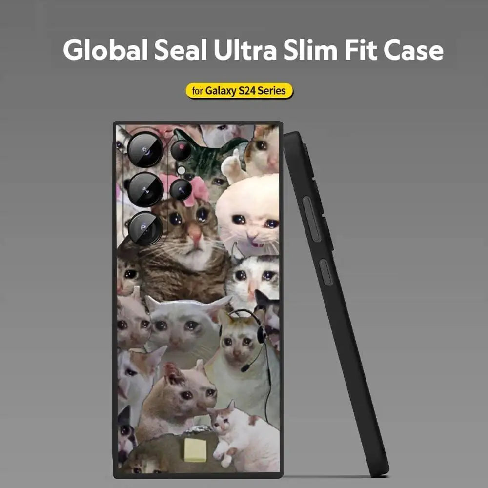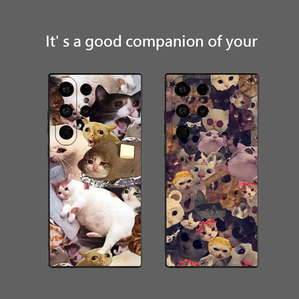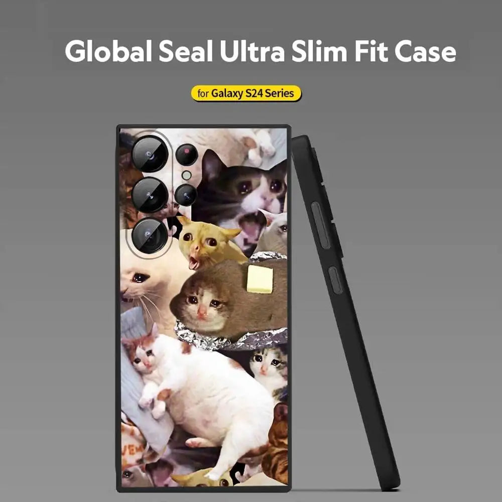 Crying Cat Meme Phone Case – Soft Silicone Cover for Samsung Galaxy S20–S25 Ultra