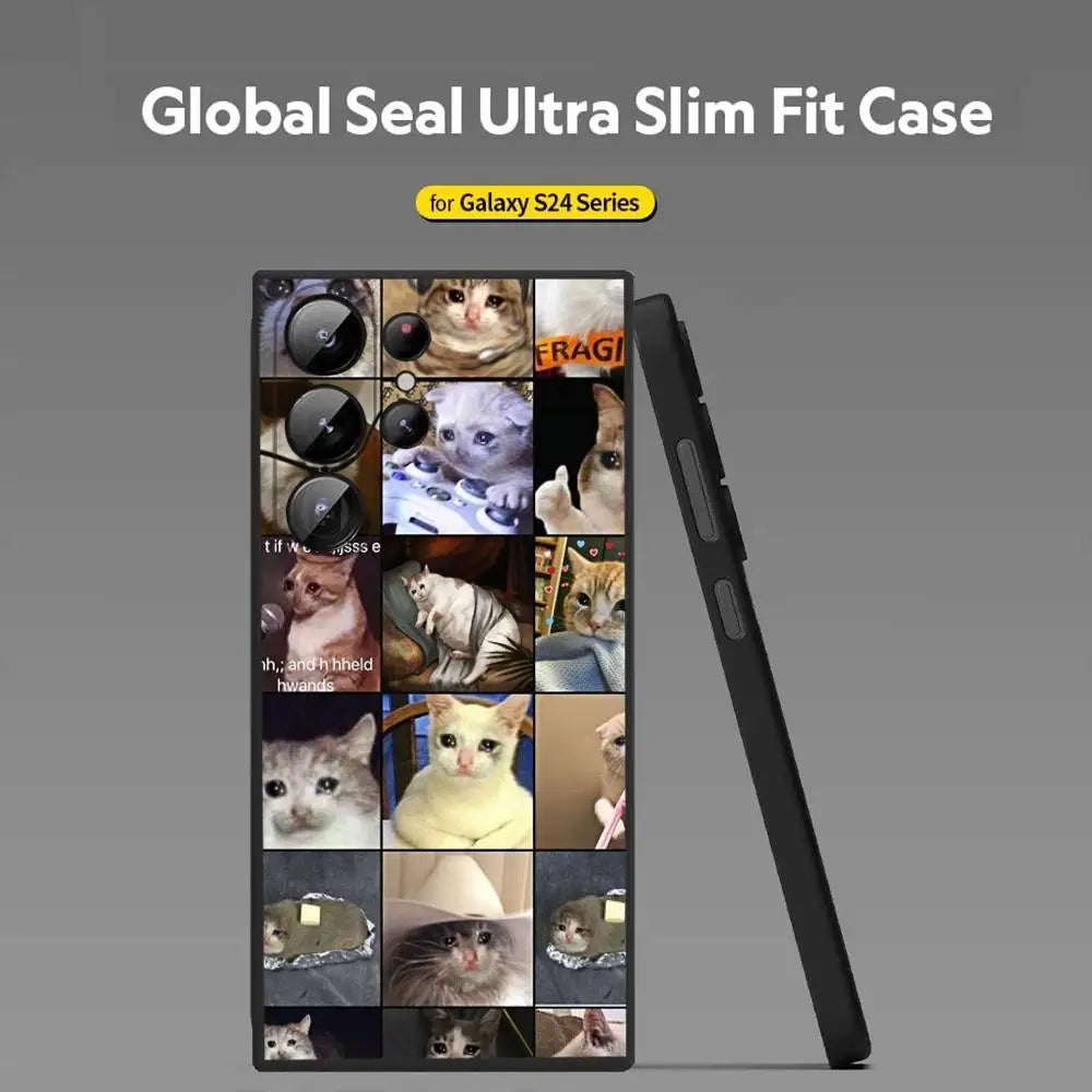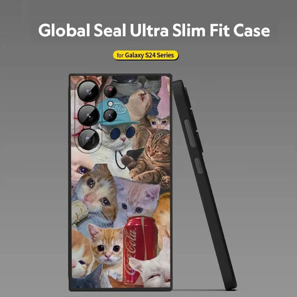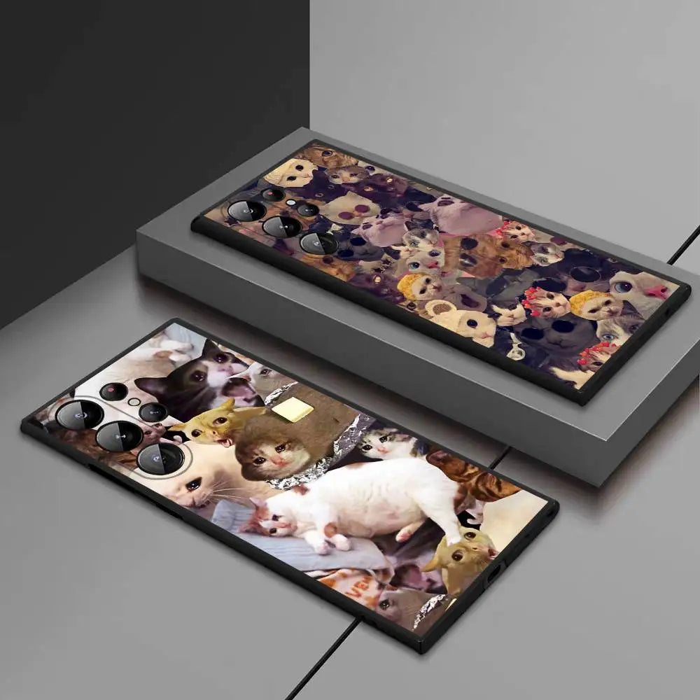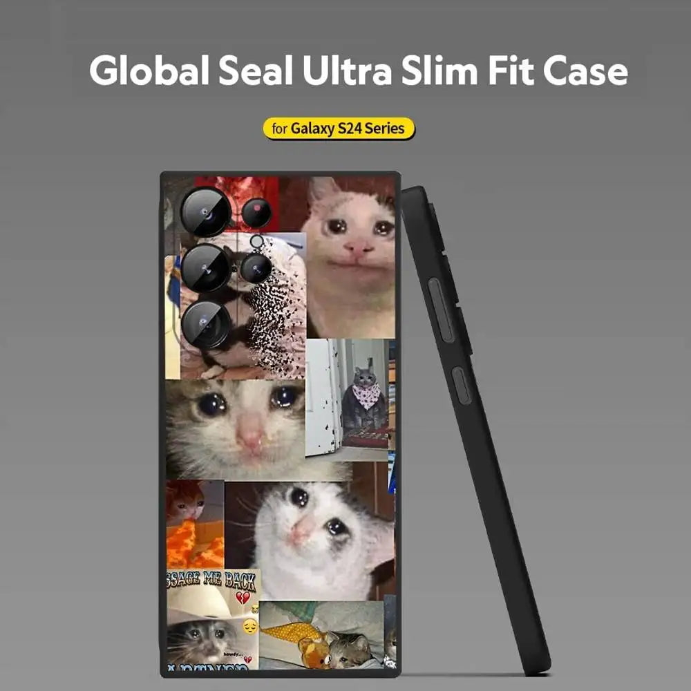 Crying Cat Meme Phone Case – Soft Silicone Cover for Samsung Galaxy S20–S25 Ultra