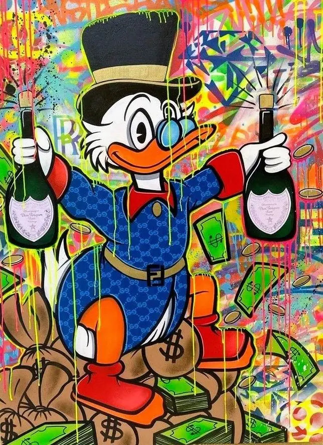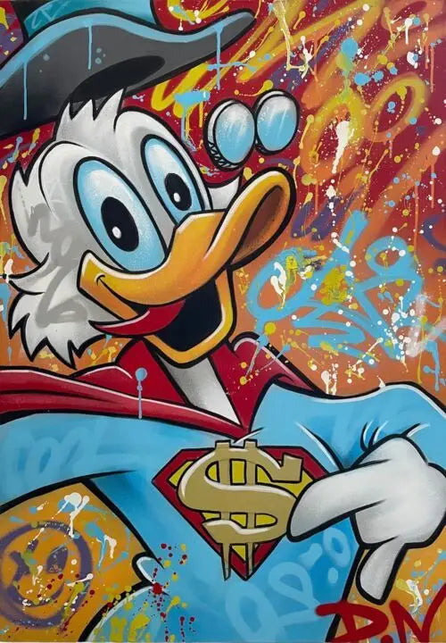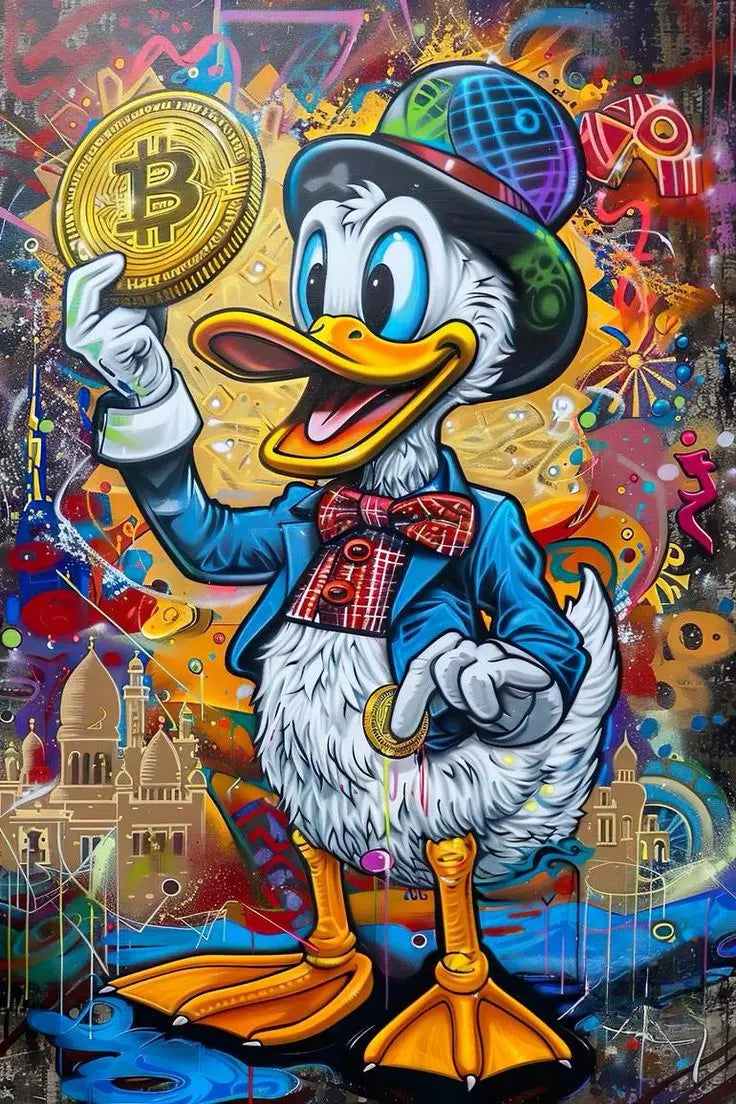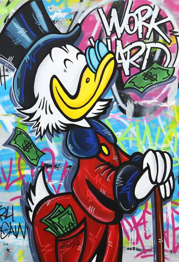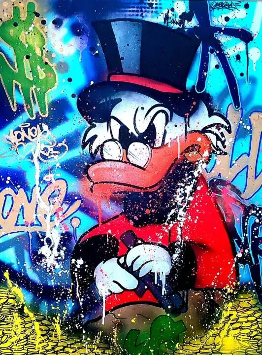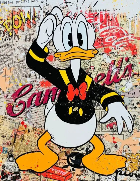 Striking graffiti-style design featuring Donald Duck in a street art aesthetic