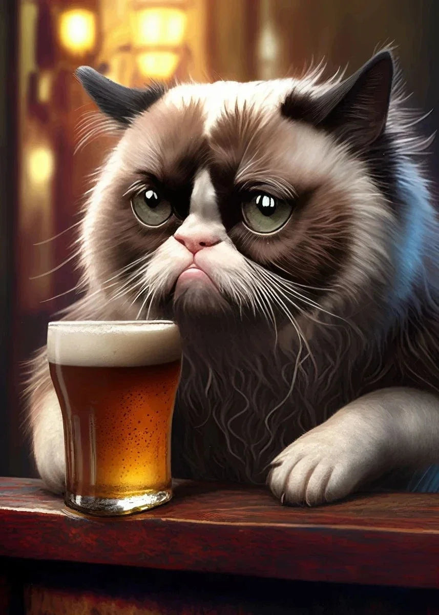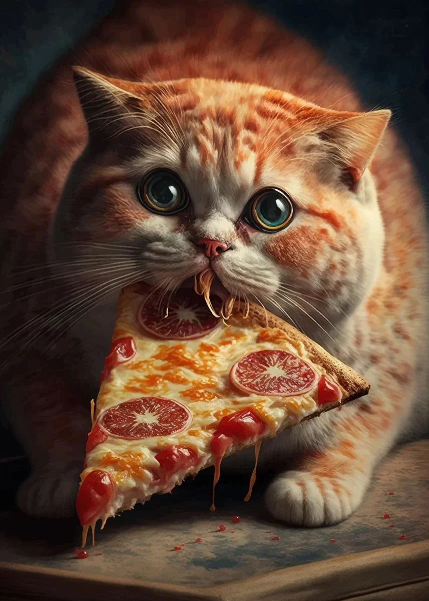 Bring laughter to your walls — get your Funny Cat Beer & Pizza Canvas Poster today!