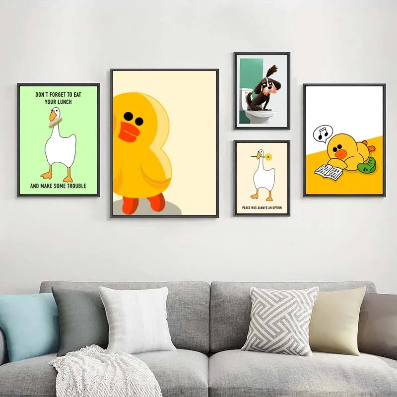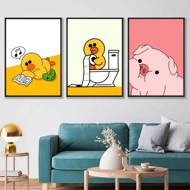 Liven up your home with this hilarious Funny Meme Animal canvas print collection — featuring goose, duck, frog, and pig cartoon characters that add humor and charm to any room or bathroom.