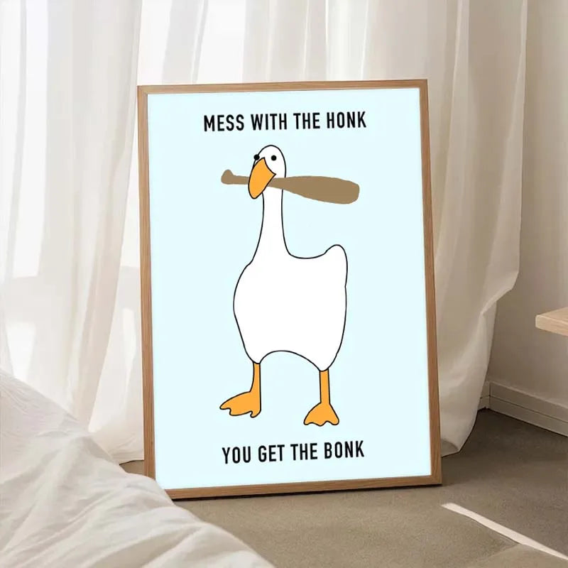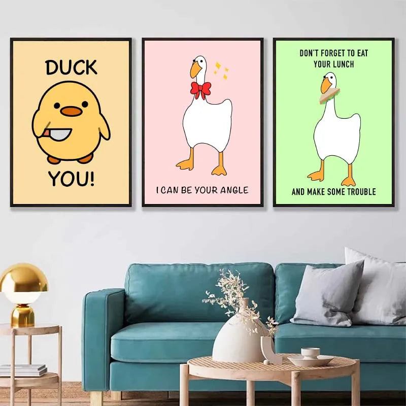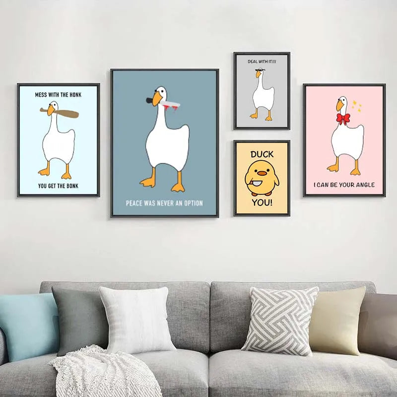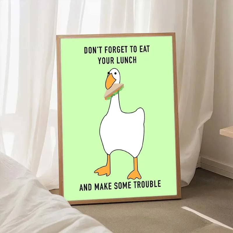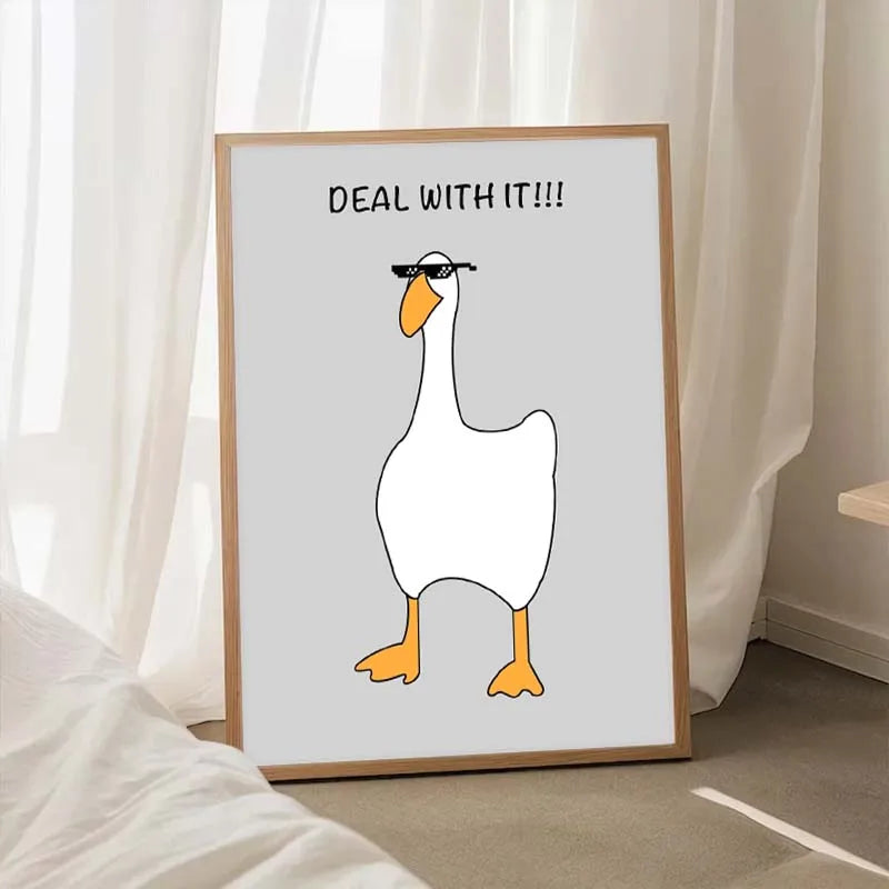 Funny Meme Animal Posters – Goose, Duck, Frog & Pig Canvas Wall Art