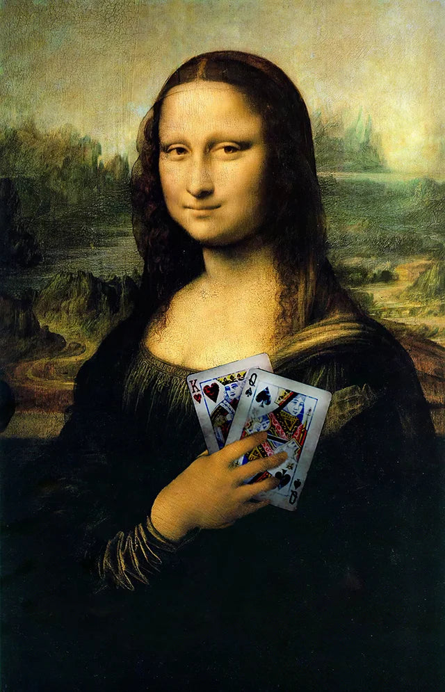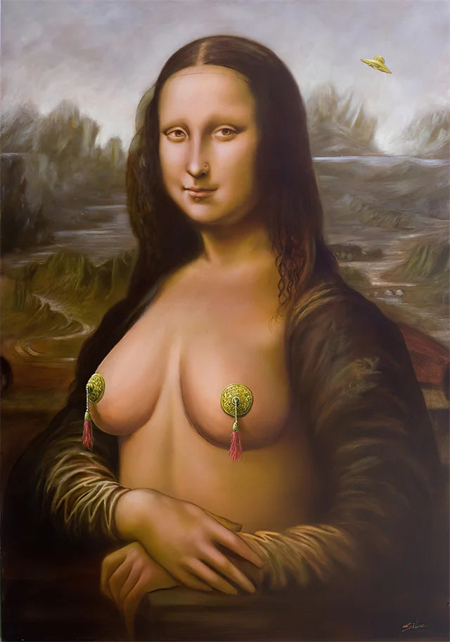 Comical reinterpretation of the famous Mona Lisa – a fun spin on a classic