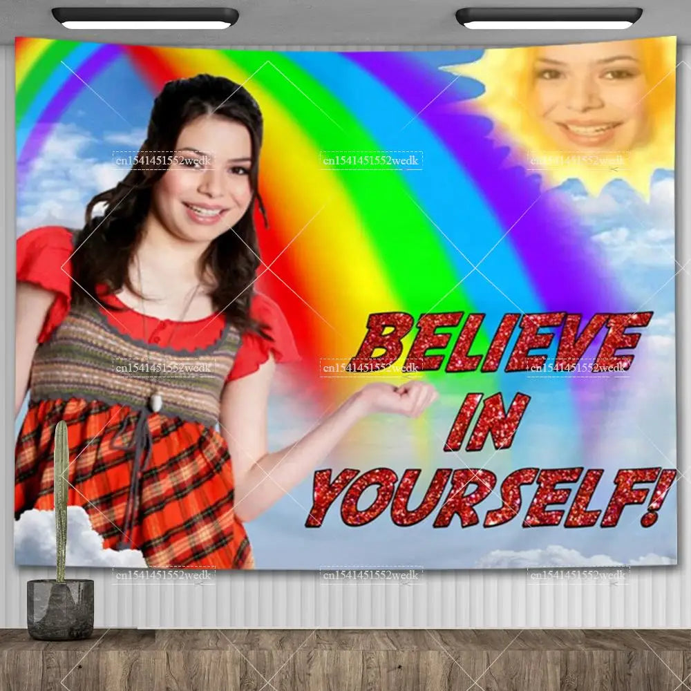 iCarly "Believe In Yourself" Wall Tapestry – Funny Miranda Cosgrove Meme Decor