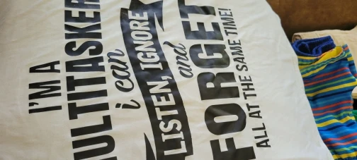 Features the humorous quote: “I’m A Multitasker – I Can Listen, Ignore & Forget at the Same Time”
