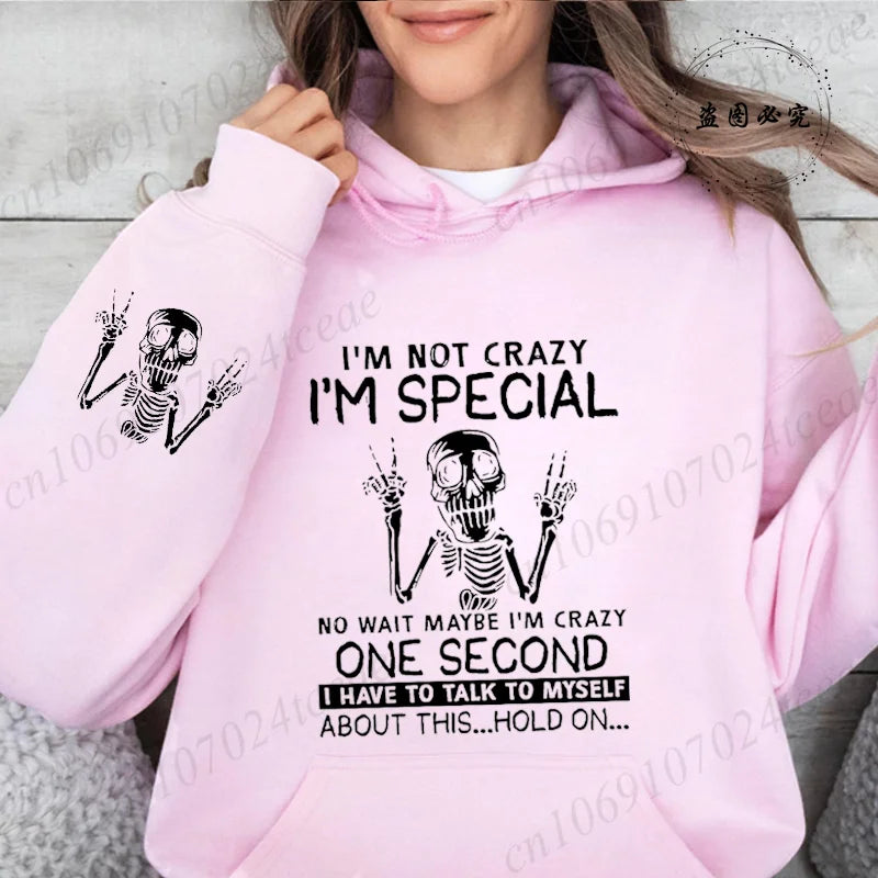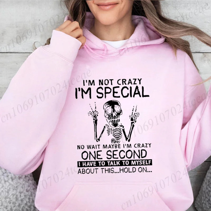 "I'm Not Crazy, I'm Special" Hoodie – Funny Harajuku Streetwear Fleece Sweatshirt for Women