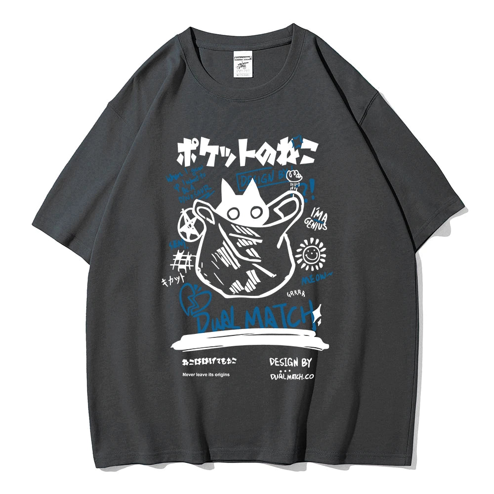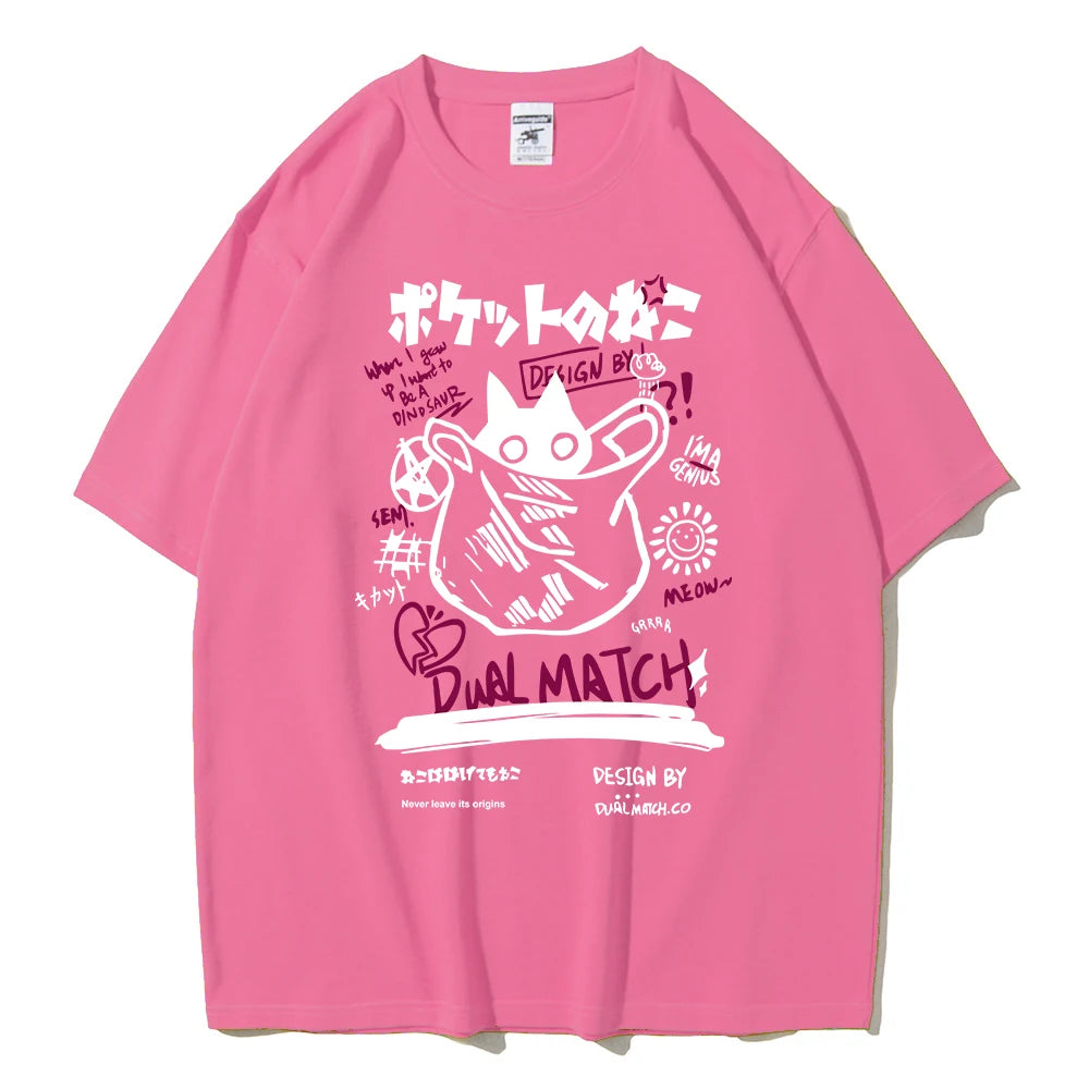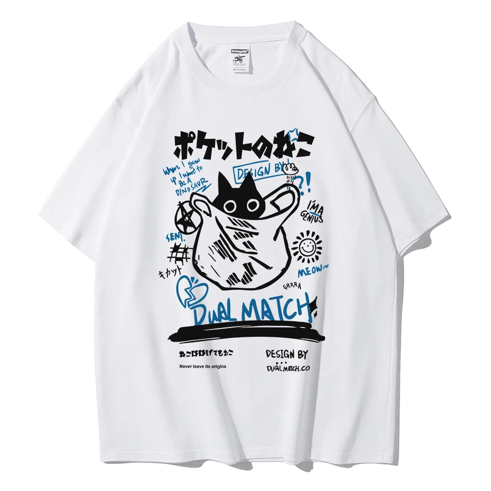 Turn heads with this adorable Kawaii Cat T-shirt — the perfect mix of playful Harajuku style and Y2K streetwear vibes, made for stylish couples and cat lovers alike!