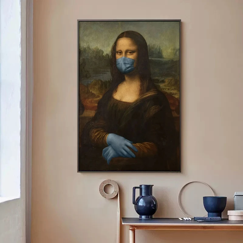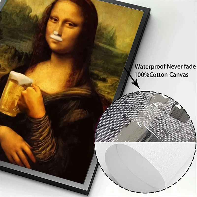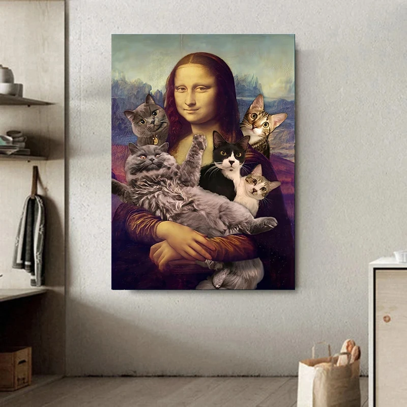 Mona Lisa with Cat Poster – Funny Canvas Wall Art for Home & Bar Décor