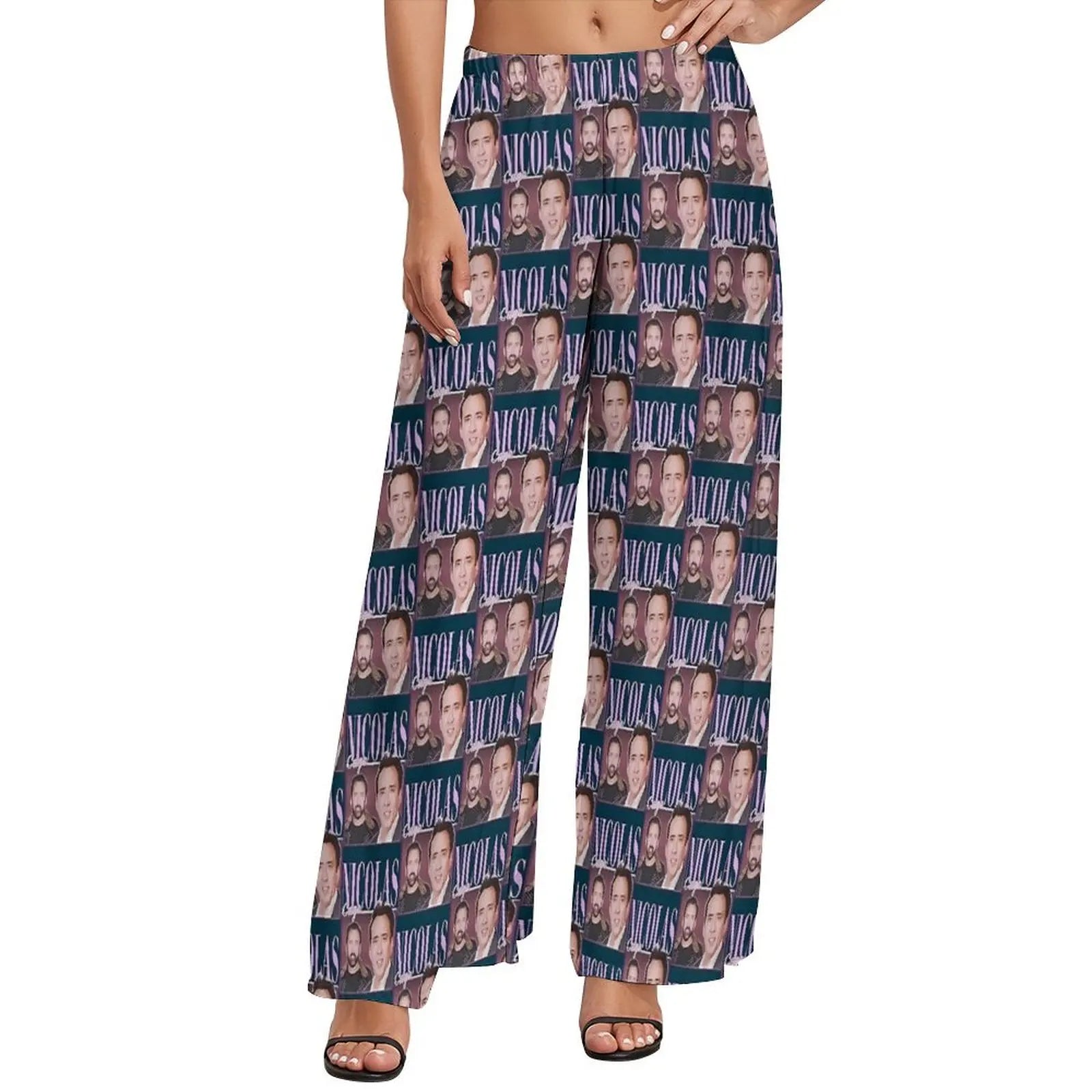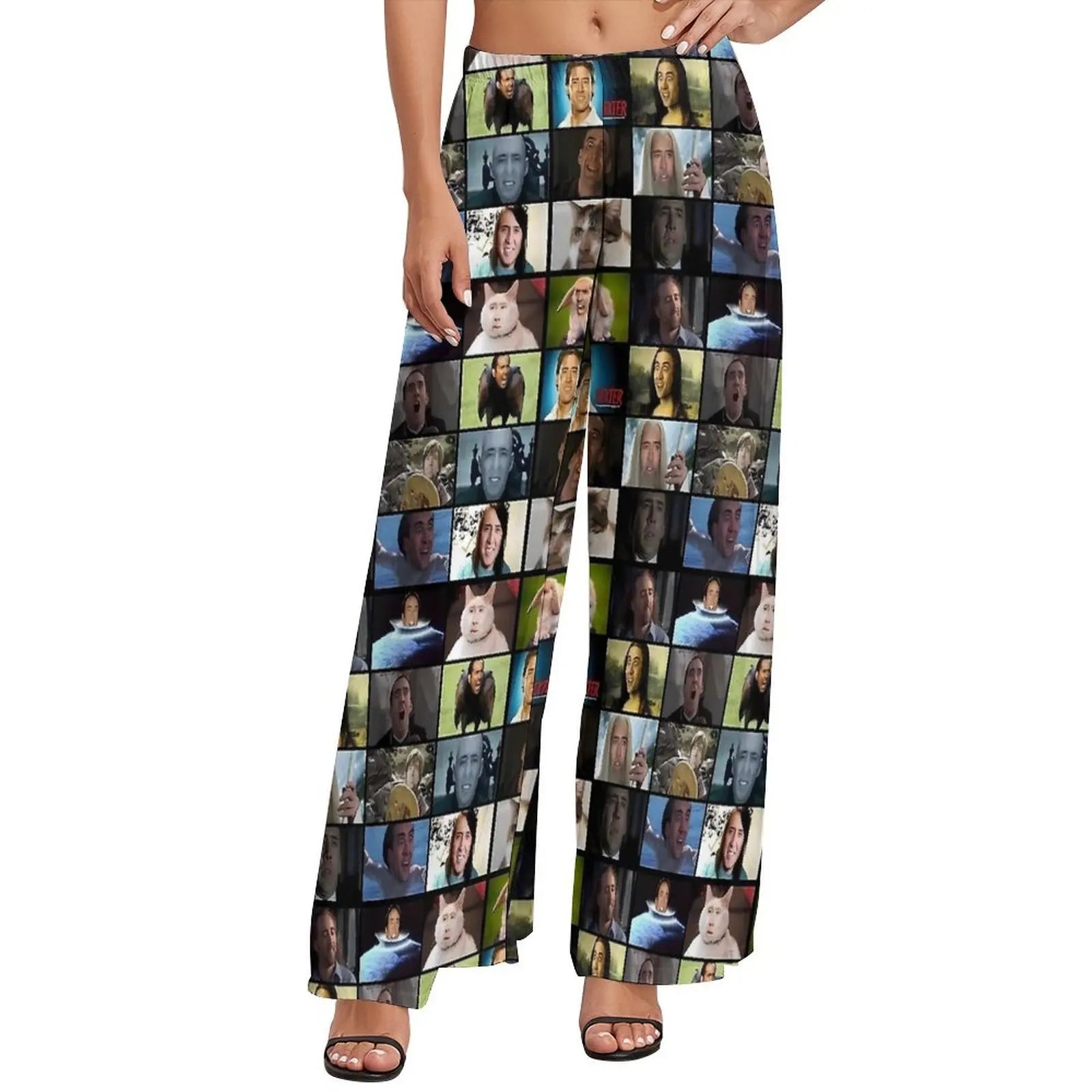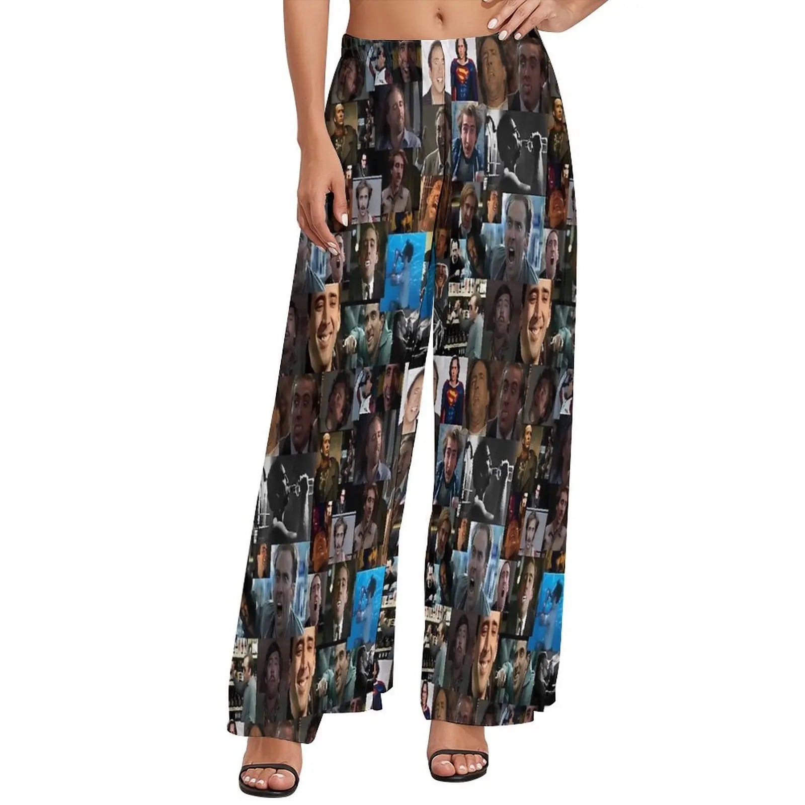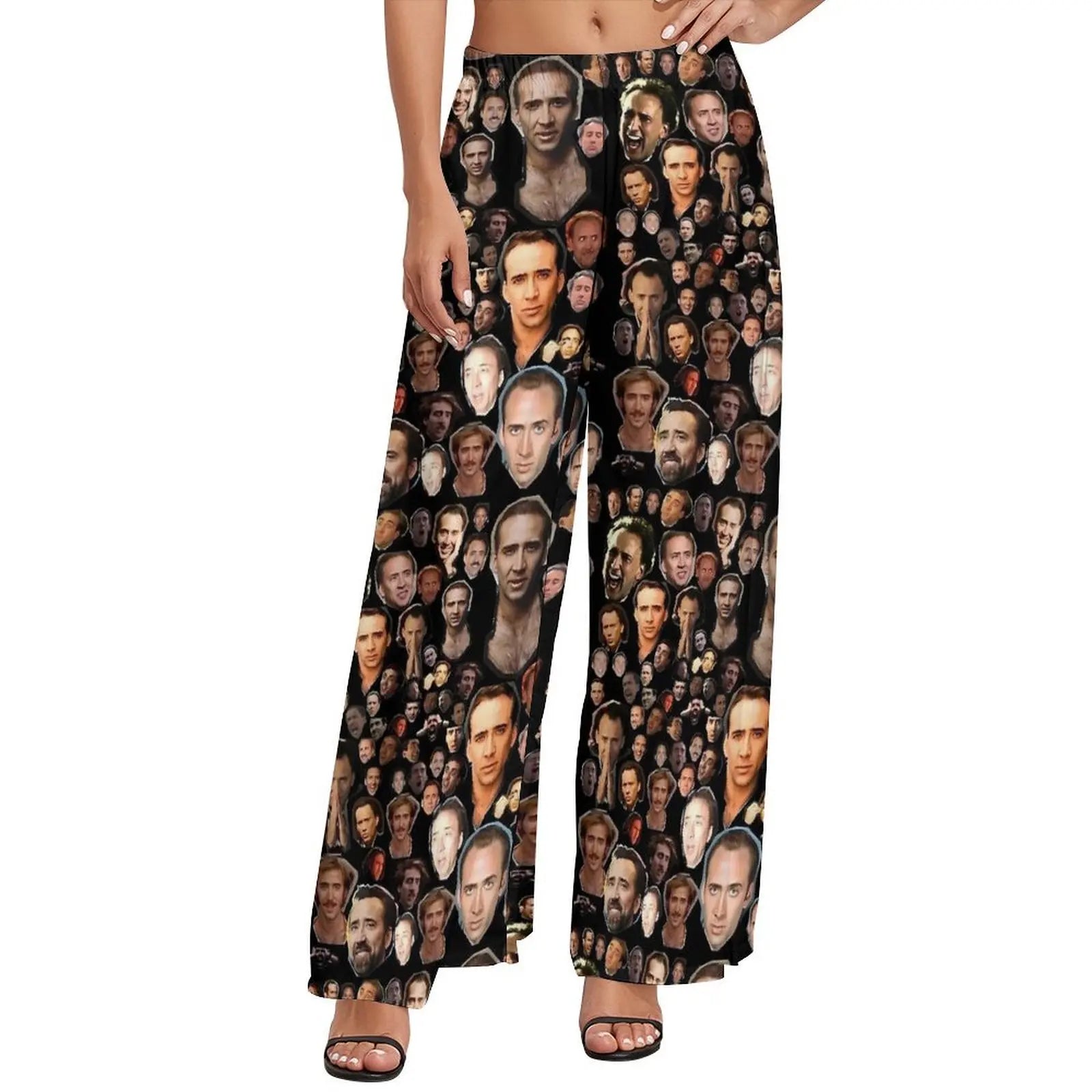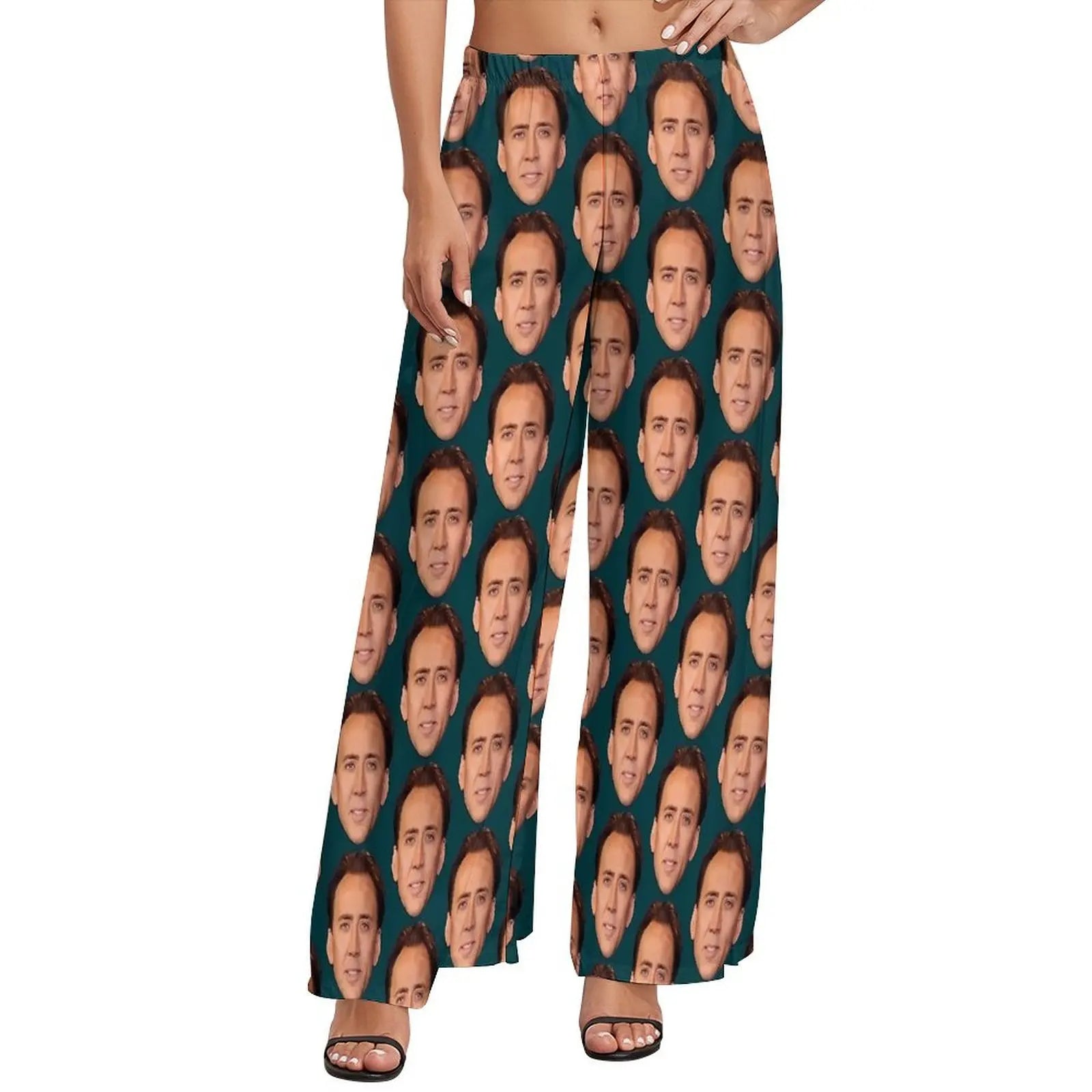 Nicolas Cage Funny Meme Pants – Women's Streetwear Workout Trousers with Elastic Waist
