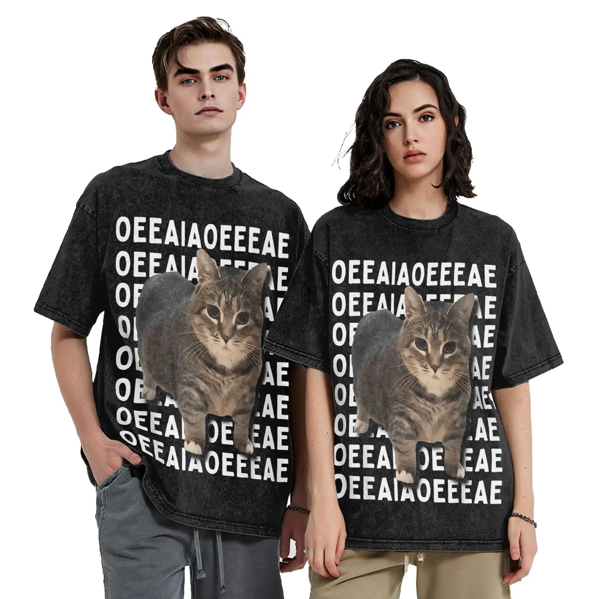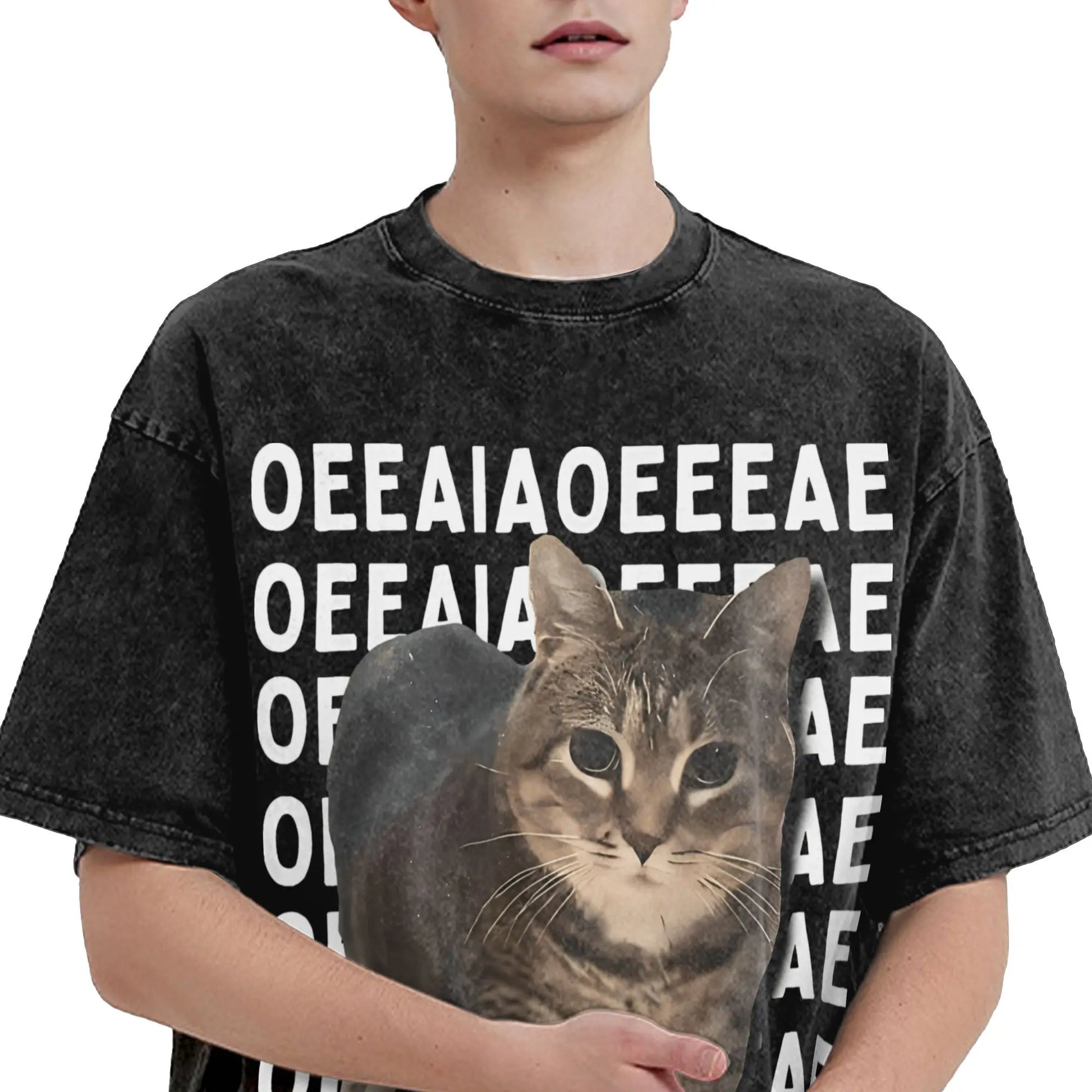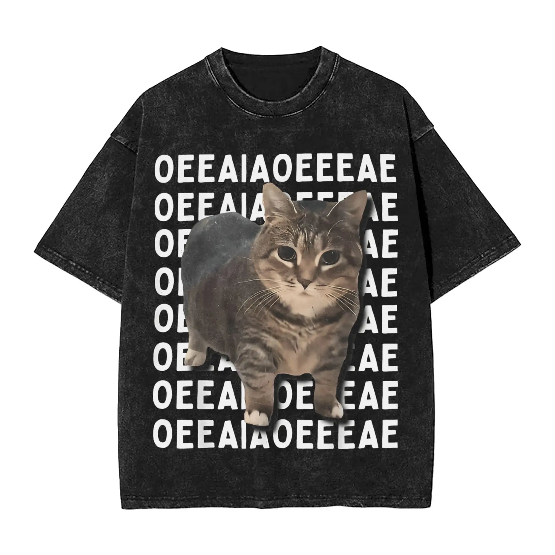 Oversize Spinning Cat Meme OIIAOIIA T-Shirts – Washed Style Tee for Men & Women