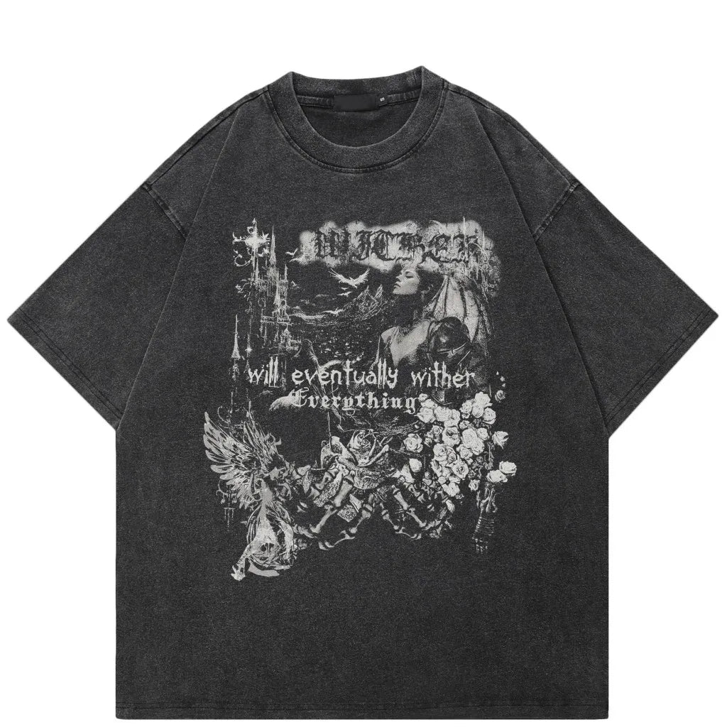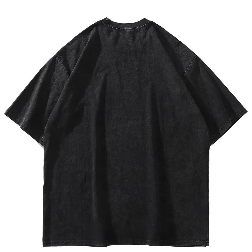 Retro Trendy English T-Shirt – Washed Streetwear Tee in Gothic Hip-Hop Style for Men & Women