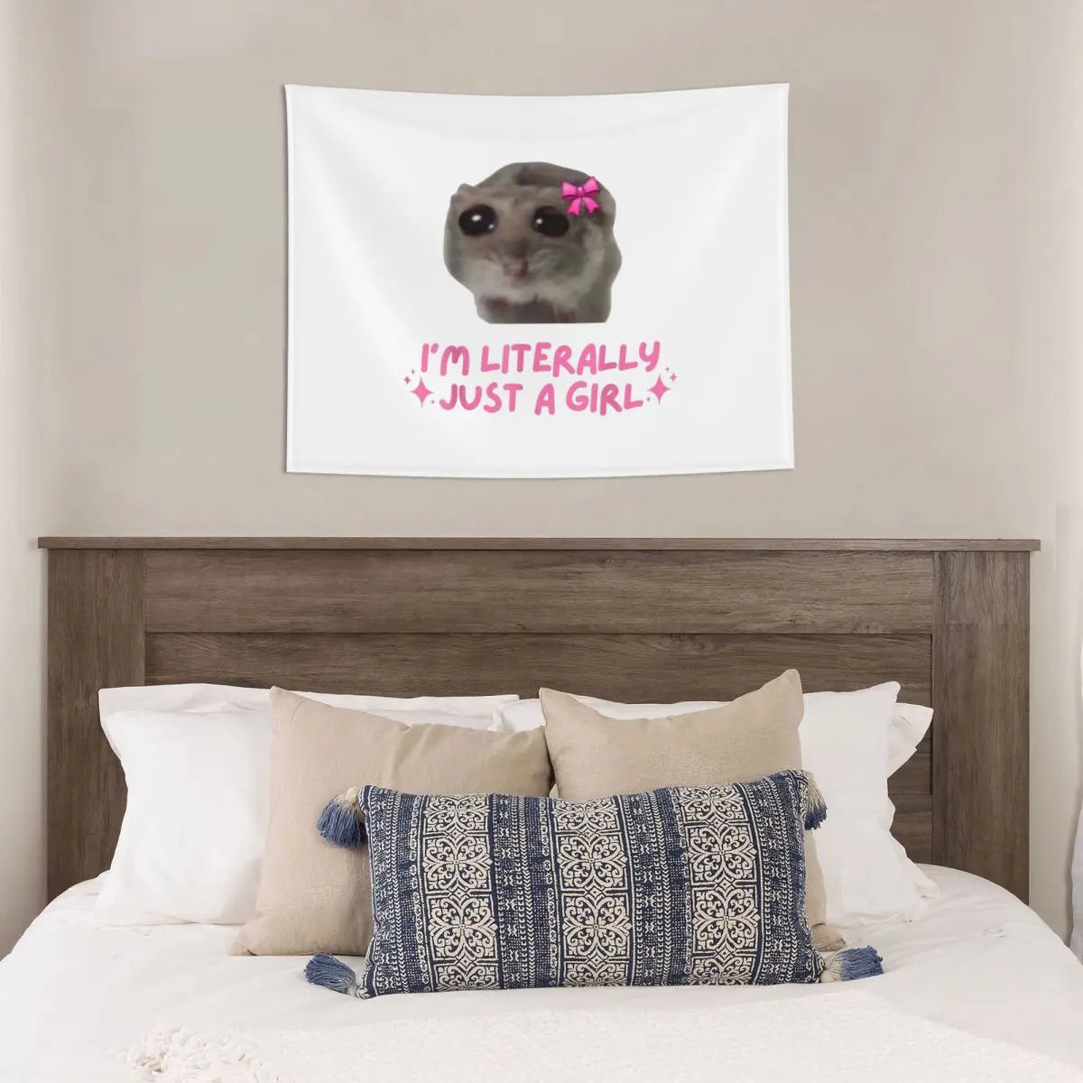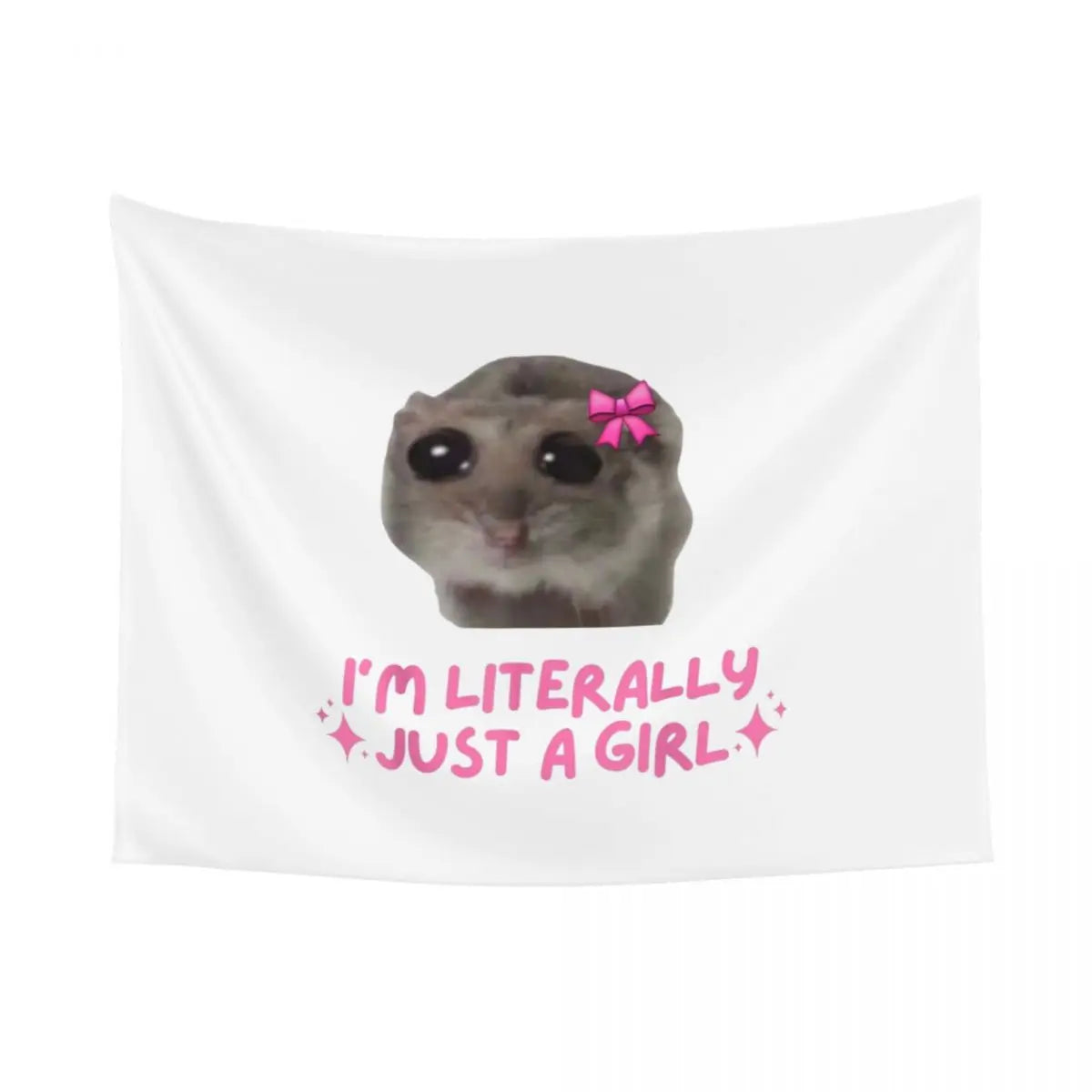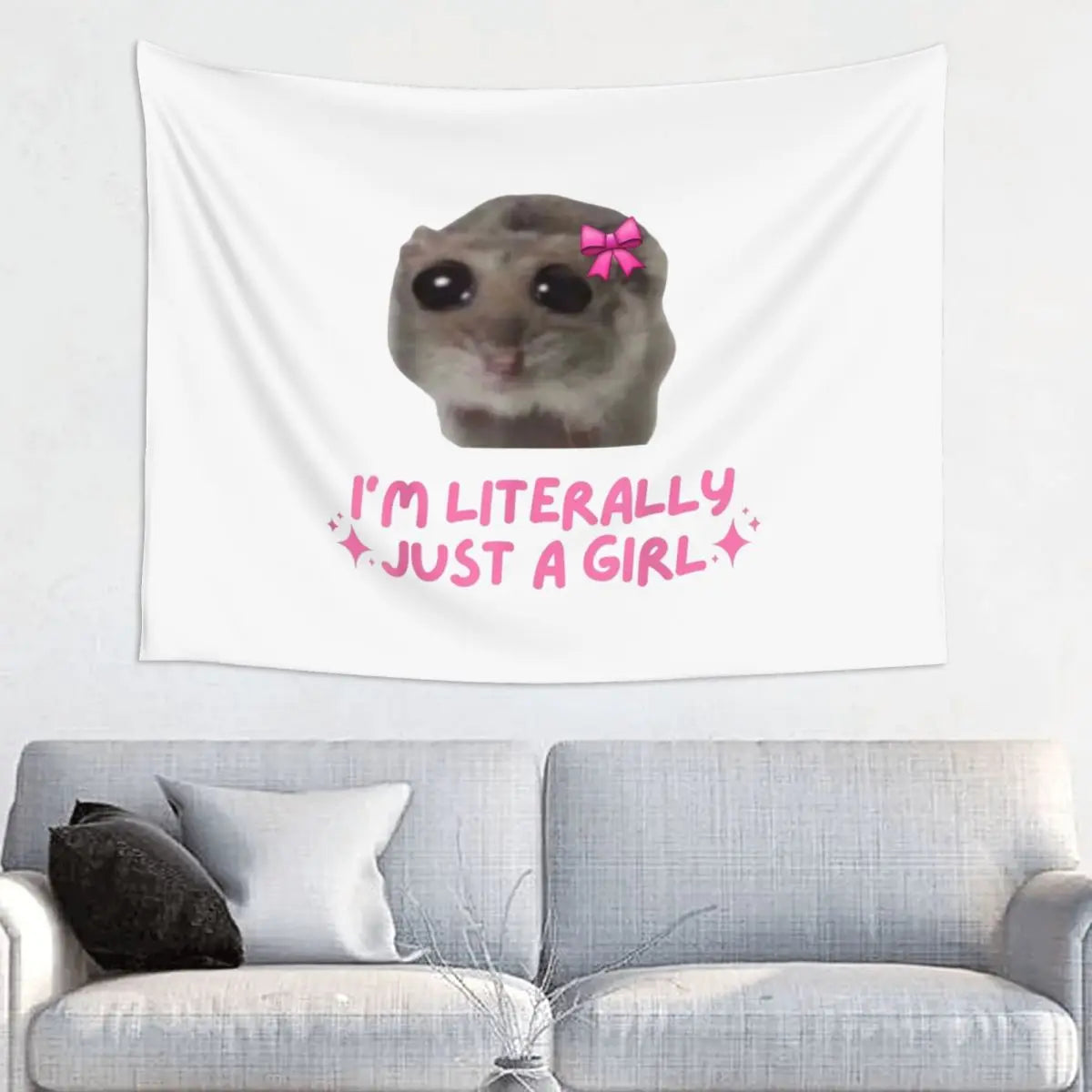Sad Hamster Meme Tapestry – "I'm Just a Girl" Wall Hanging Art for Home Decor (95x73cm)