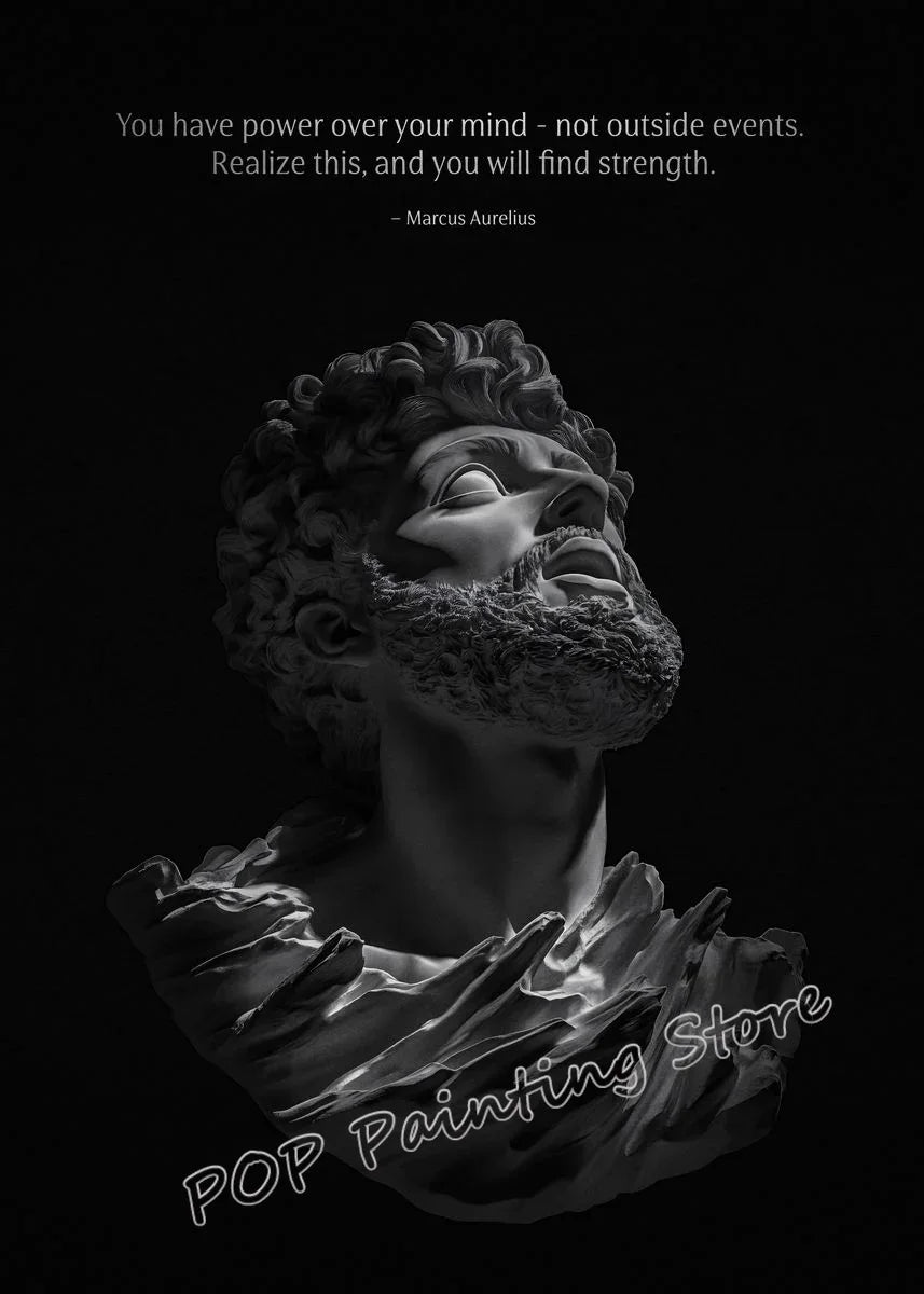 Inspire calm, clarity, and inner strength with this Stoic Wisdom Quote Poster — a minimalist canvas featuring Greek sculpture art and timeless philosophical insight, perfect for thoughtful home or office decor.