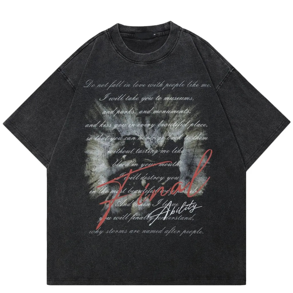 Summer New Arrival American Retro English Printing T-Shirt – Heavyweight Pure Cotton Plus Size Streetwear for Men & Women