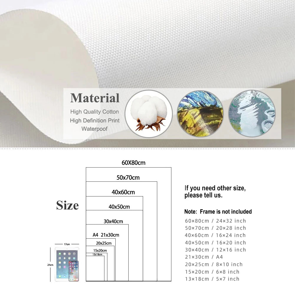 High-quality canvas or premium art paper with fade-resistant ink for vivid, lasting color.