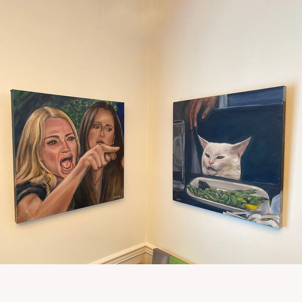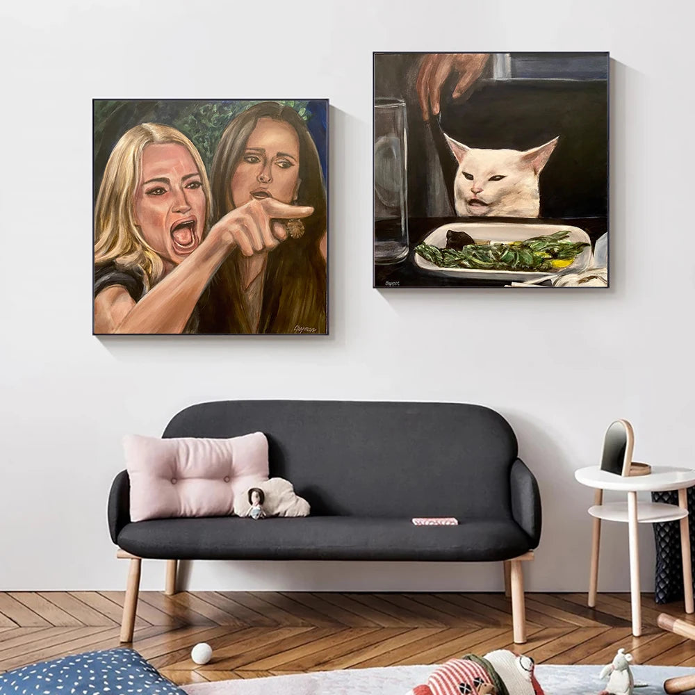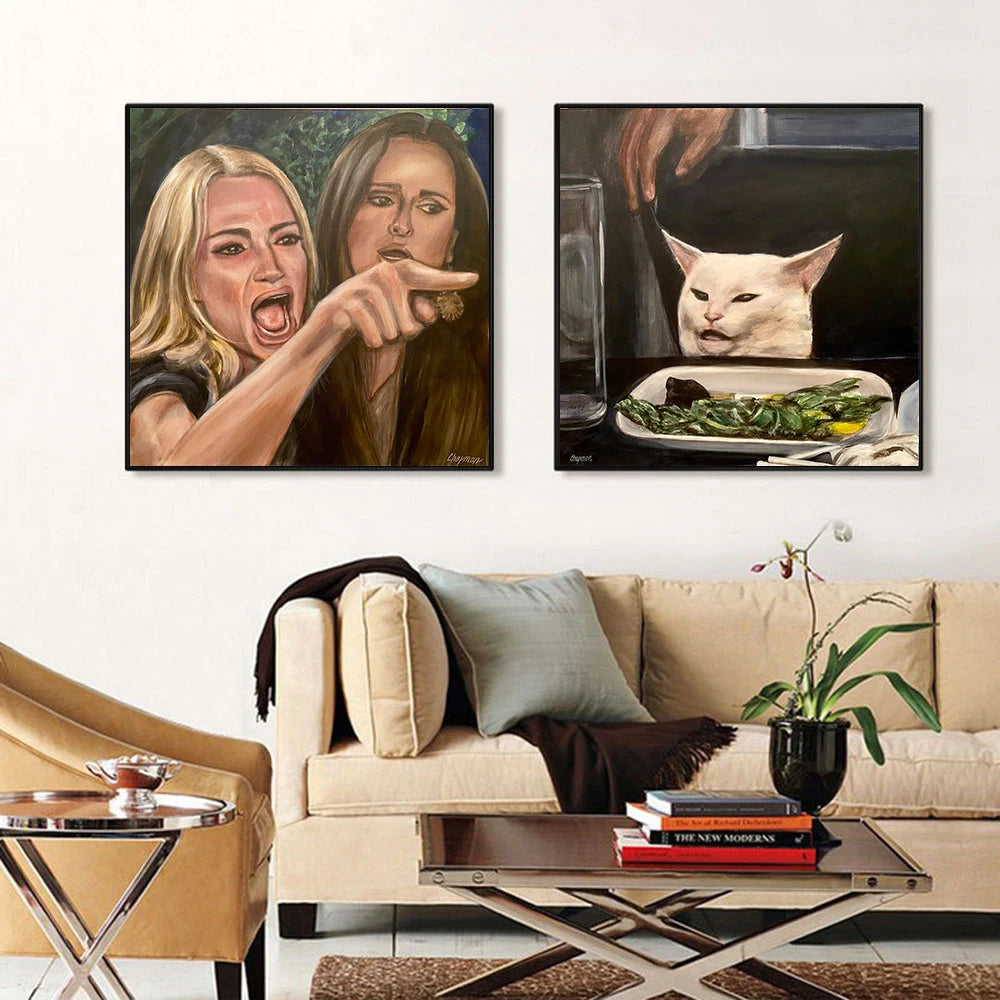 "Woman Yelling at the Cat" Meme Poster – Abstract Wall Art Print (2-Piece Set)